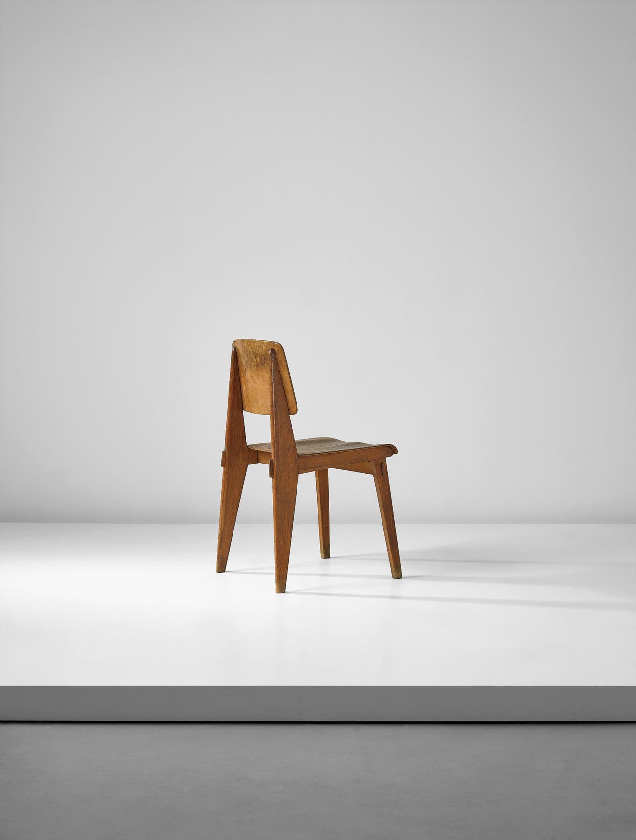 French | B. 1901 D. 1984Jean Prouvé believed in design as a vehicle for improvement. His manufactory Les Ateliers Jean Prouvé, located in Nancy, France, produced furniture for schools, factories and municipal projects, both within France and in locations as far flung as the Congo. Though he designed for the masses, pieces such as his "Potence" lamps and "Standard" chairs are among the most iconic fixtures in sophisticated, high-design interiors today. Collectors connect with his utilitarian, austere designs that strip materials down to the bare minimum without compromising on proportion or style.
