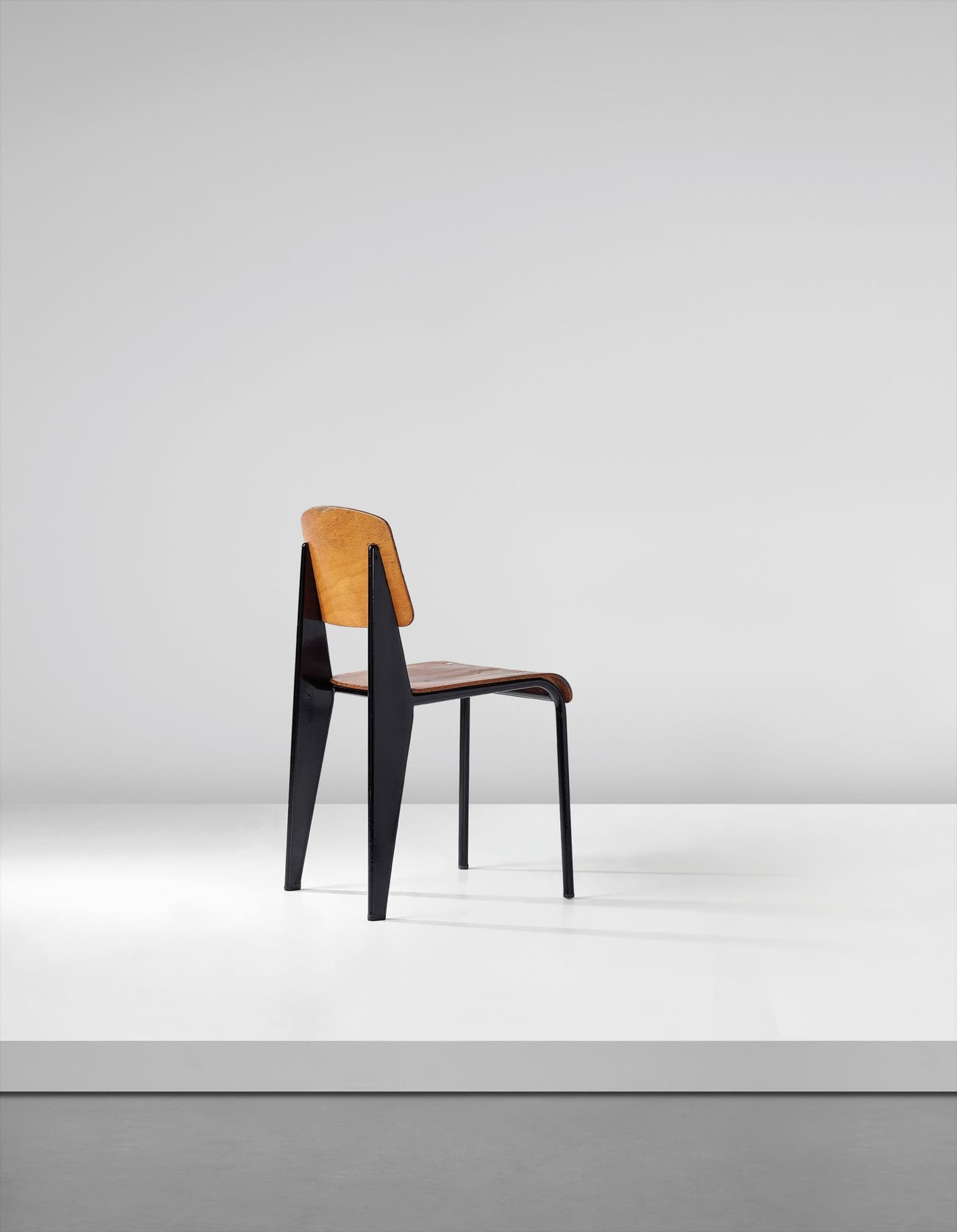 French | B. 1901 D. 1984Jean Prouvé believed in design as a vehicle for improvement. His manufactory Les Ateliers Jean Prouvé, located in Nancy, France, produced furniture for schools, factories and municipal projects, both within France and in locations as far flung as the Congo. Though he designed for the masses, pieces such as his "Potence" lamps and "Standard" chairs are among the most iconic fixtures in sophisticated, high-design interiors today. Collectors connect with his utilitarian, austere designs that strip materials down to the bare minimum without compromising on proportion or style.