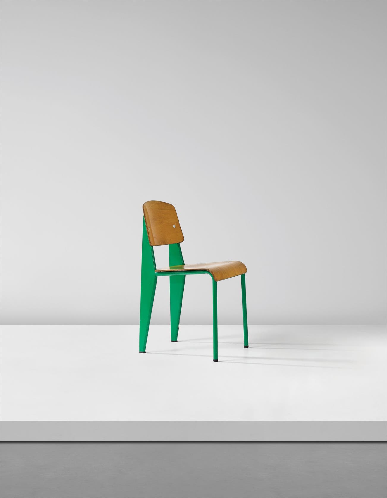 French | B. 1901 D. 1984Jean Prouvé believed in design as a vehicle for improvement. His manufactory Les Ateliers Jean Prouvé, located in Nancy, France, produced furniture for schools, factories and municipal projects, both within France and in locations as far flung as the Congo. Though he designed for the masses, pieces such as his "Potence" lamps and "Standard" chairs are among the most iconic fixtures in sophisticated, high-design interiors today. Collectors connect with his utilitarian, austere designs that strip materials down to the bare minimum without compromising on proportion or style.