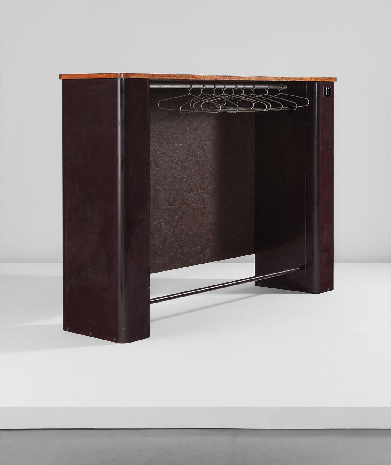 French | B. 1901 D. 1984Jean Prouvé believed in design as a vehicle for improvement. His manufactory Les Ateliers Jean Prouvé, located in Nancy, France, produced furniture for schools, factories and municipal projects, both within France and in locations as far flung as the Congo. Though he designed for the masses, pieces such as his "Potence" lamps and "Standard" chairs are among the most iconic fixtures in sophisticated, high-design interiors today. Collectors connect with his utilitarian, austere designs that strip materials down to the bare minimum without compromising on proportion or style.