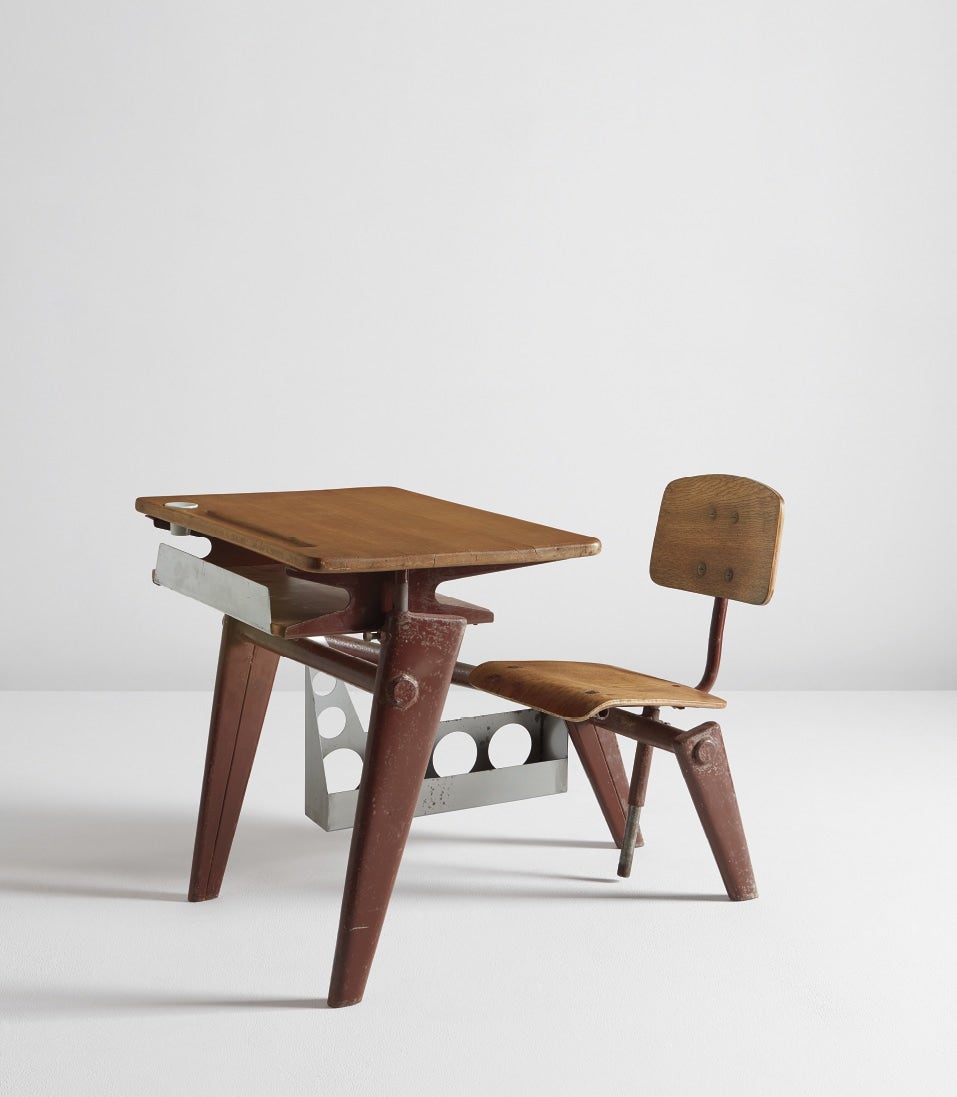 Prouvé grew up in Nancy, France, the son of Victor Prouvé, an artist and co-founder of the École de Nancy, and Marie Duhamel, a pianist. He apprenticed to master blacksmiths in Paris and opened a small wrought iron forge in Nancy. However it was sheet steel that ultimately captured Prouvé's imagination, and he ingeniously adapted it to furniture, lighting and even pre-fabricated houses, often collaborating with other design luminaries of the period, such as Robert Mallet-Stevens, Le Corbusier and Charlotte Perriand.