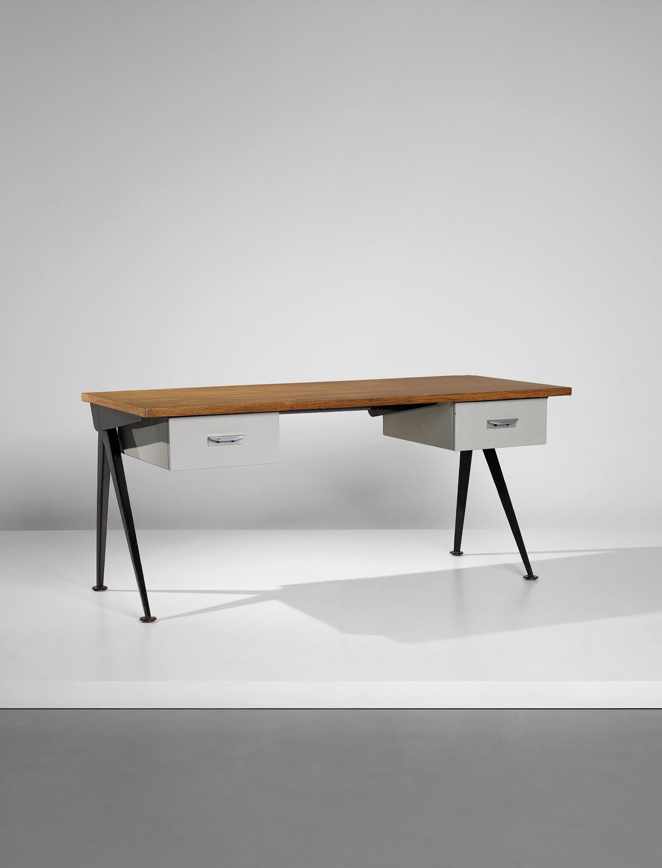 Prouvé grew up in Nancy, France, the son of Victor Prouvé, an artist and co-founder of the École de Nancy, and Marie Duhamel, a pianist. He apprenticed to master blacksmiths in Paris and opened a small wrought iron forge in Nancy. However it was sheet steel that ultimately captured Prouvé's imagination, and he ingeniously adapted it to furniture, lighting and even pre-fabricated houses, often collaborating with other design luminaries of the period, such as Robert Mallet-Stevens, Le Corbusier and Charlotte Perriand.