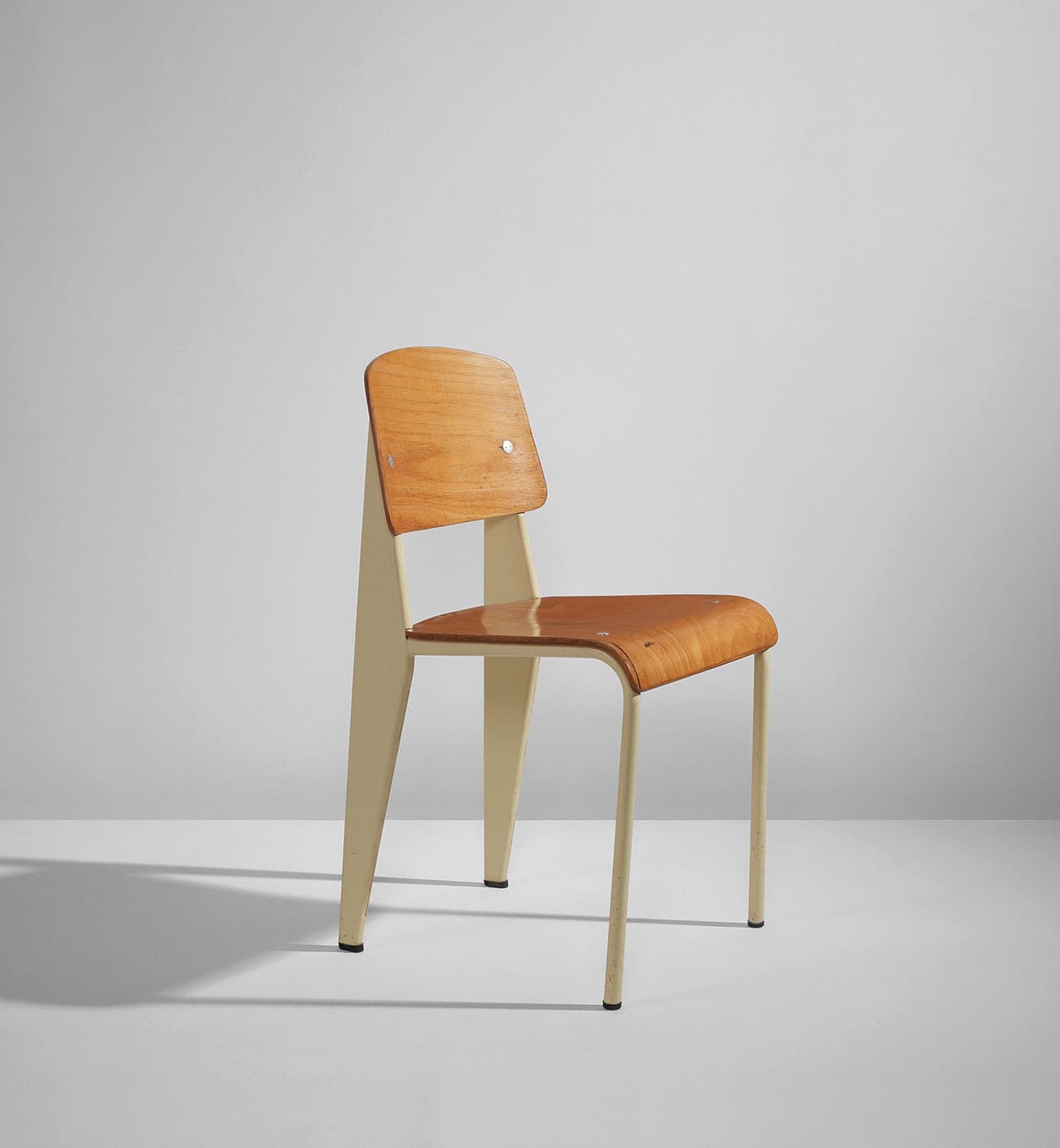 French | B. 1901 D. 1984Jean Prouvé believed in design as a vehicle for improvement. His manufactory Les Ateliers Jean Prouvé, located in Nancy, France, produced furniture for schools, factories and municipal projects, both within France and in locations as far flung as the Congo. Though he designed for the masses, pieces such as his "Potence" lamps and "Standard" chairs are among the most iconic fixtures in sophisticated, high-design interiors today. Collectors connect with his utilitarian, austere designs that strip materials down to the bare minimum without compromising on proportion or style.
