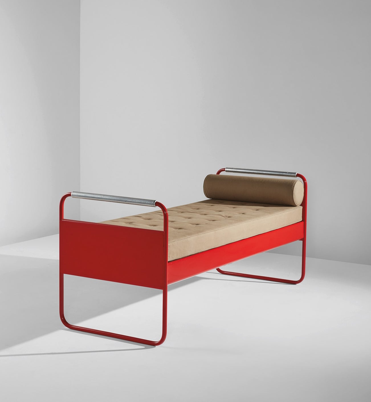 French | B. 1901 D. 1984Jean Prouvé believed in design as a vehicle for improvement. His manufactory Les Ateliers Jean Prouvé, located in Nancy, France, produced furniture for schools, factories and municipal projects, both within France and in locations as far flung as the Congo. Though he designed for the masses, pieces such as his "Potence" lamps and "Standard" chairs are among the most iconic fixtures in sophisticated, high-design interiors today. Collectors connect with his utilitarian, austere designs that strip materials down to the bare minimum without compromising on proportion or style.