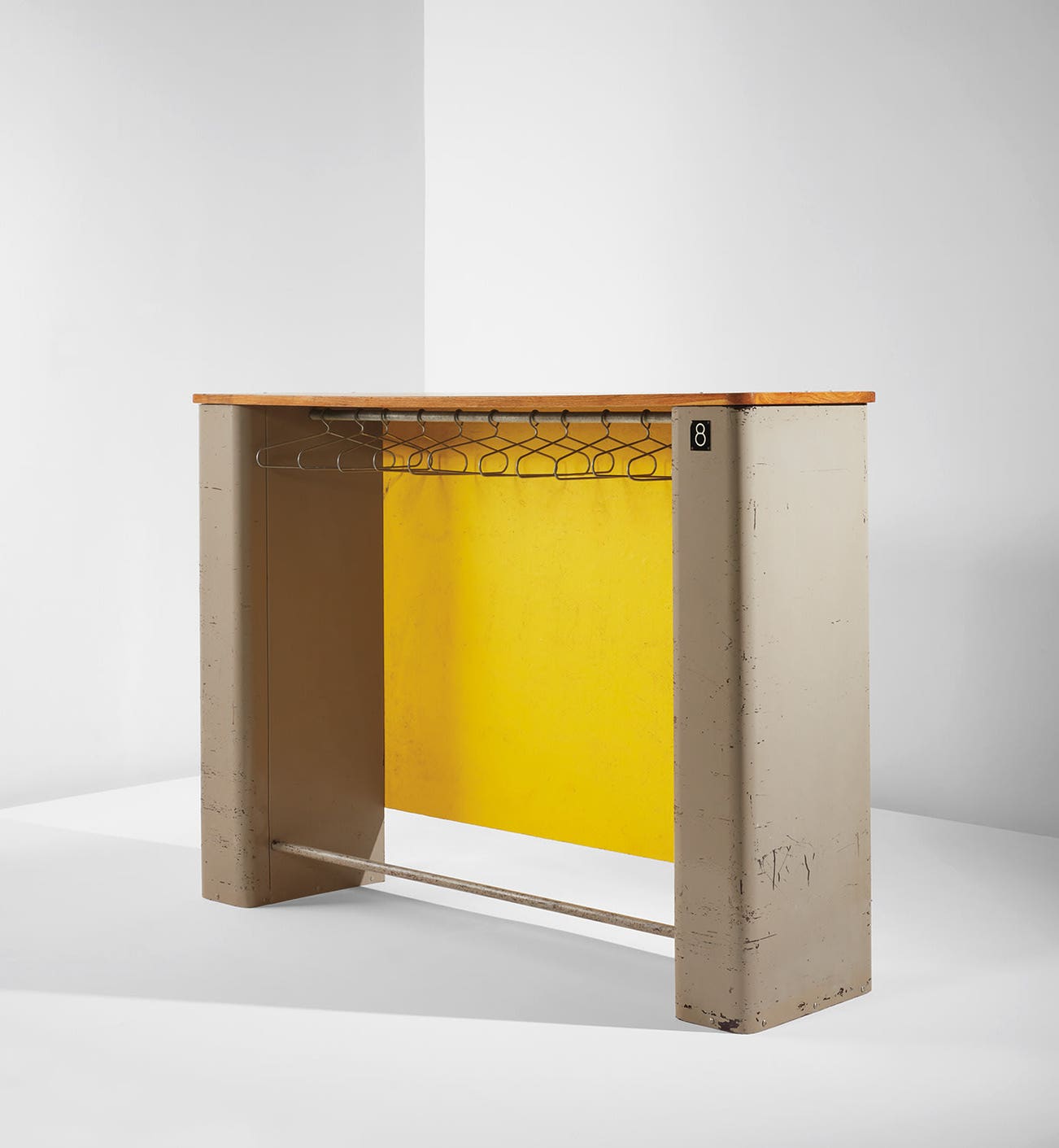 French | B. 1901 D. 1984Jean Prouvé believed in design as a vehicle for improvement. His manufactory Les Ateliers Jean Prouvé, located in Nancy, France, produced furniture for schools, factories and municipal projects, both within France and in locations as far flung as the Congo. Though he designed for the masses, pieces such as his "Potence" lamps and "Standard" chairs are among the most iconic fixtures in sophisticated, high-design interiors today. Collectors connect with his utilitarian, austere designs that strip materials down to the bare minimum without compromising on proportion or style.