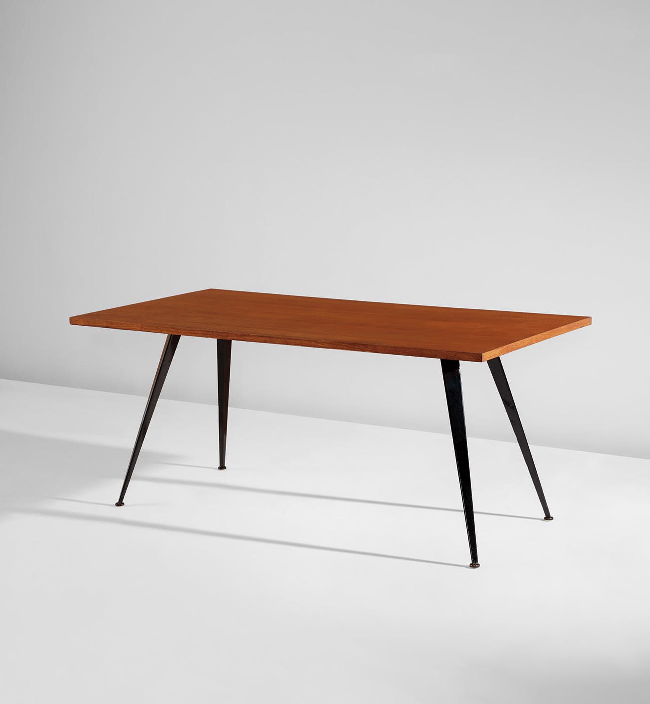 French | B. 1901 D. 1984Jean Prouvé believed in design as a vehicle for improvement. His manufactory Les Ateliers Jean Prouvé, located in Nancy, France, produced furniture for schools, factories and municipal projects, both within France and in locations as far flung as the Congo. Though he designed for the masses, pieces such as his "Potence" lamps and "Standard" chairs are among the most iconic fixtures in sophisticated, high-design interiors today. Collectors connect with his utilitarian, austere designs that strip materials down to the bare minimum without compromising on proportion or style.