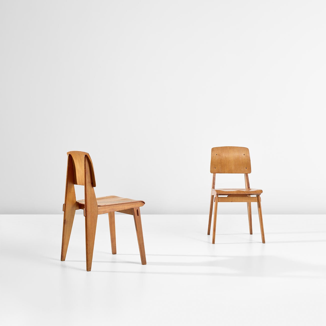 French | B. 1901 D. 1984Jean Prouvé believed in design as a vehicle for improvement. His manufactory Les Ateliers Jean Prouvé, located in Nancy, France, produced furniture for schools, factories and municipal projects, both within France and in locations as far flung as the Congo. Though he designed for the masses, pieces such as his "Potence" lamps and "Standard" chairs are among the most iconic fixtures in sophisticated, high-design interiors today. Collectors connect with his utilitarian, austere designs that strip materials down to the bare minimum without compromising on proportion or style.