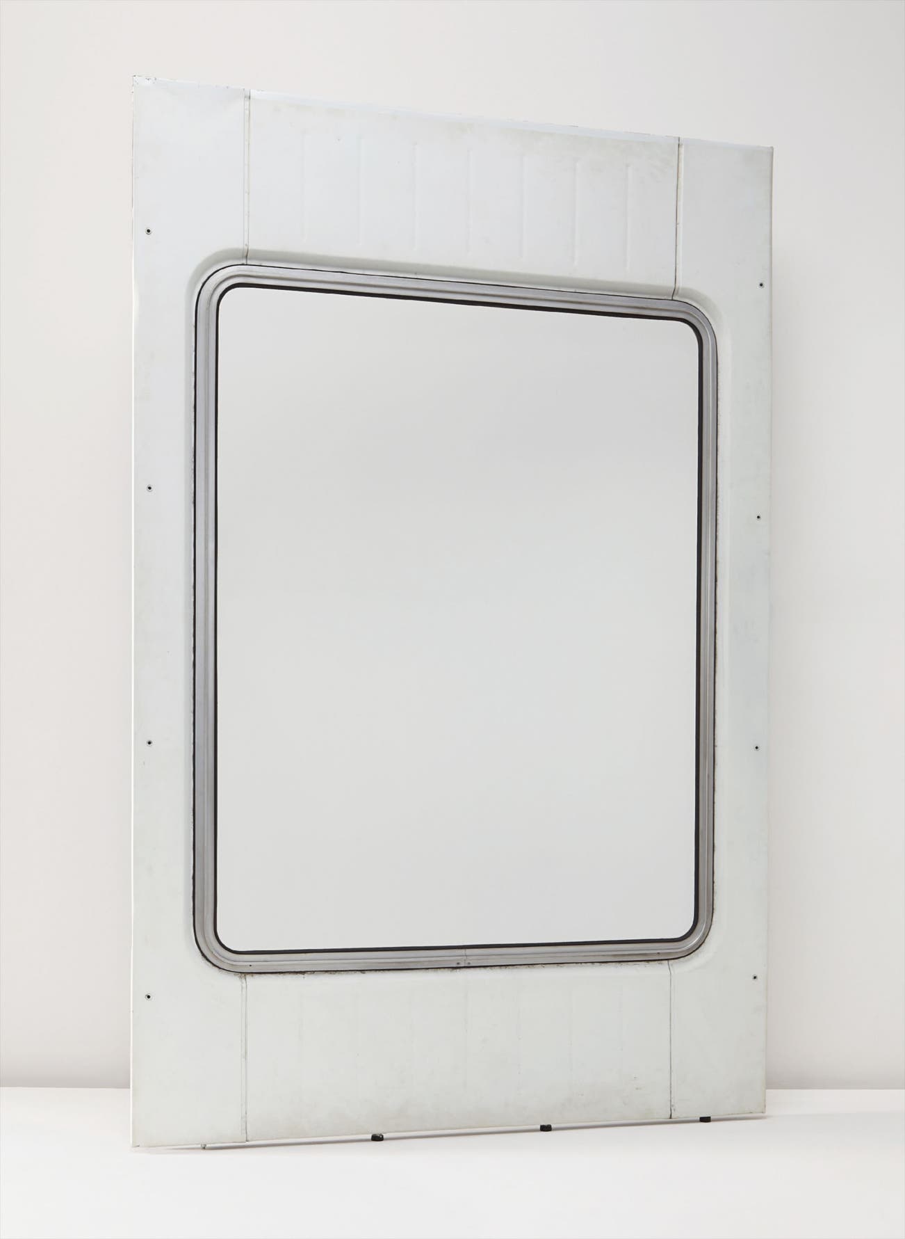 Painted aluminum, steel, glass, rubber.