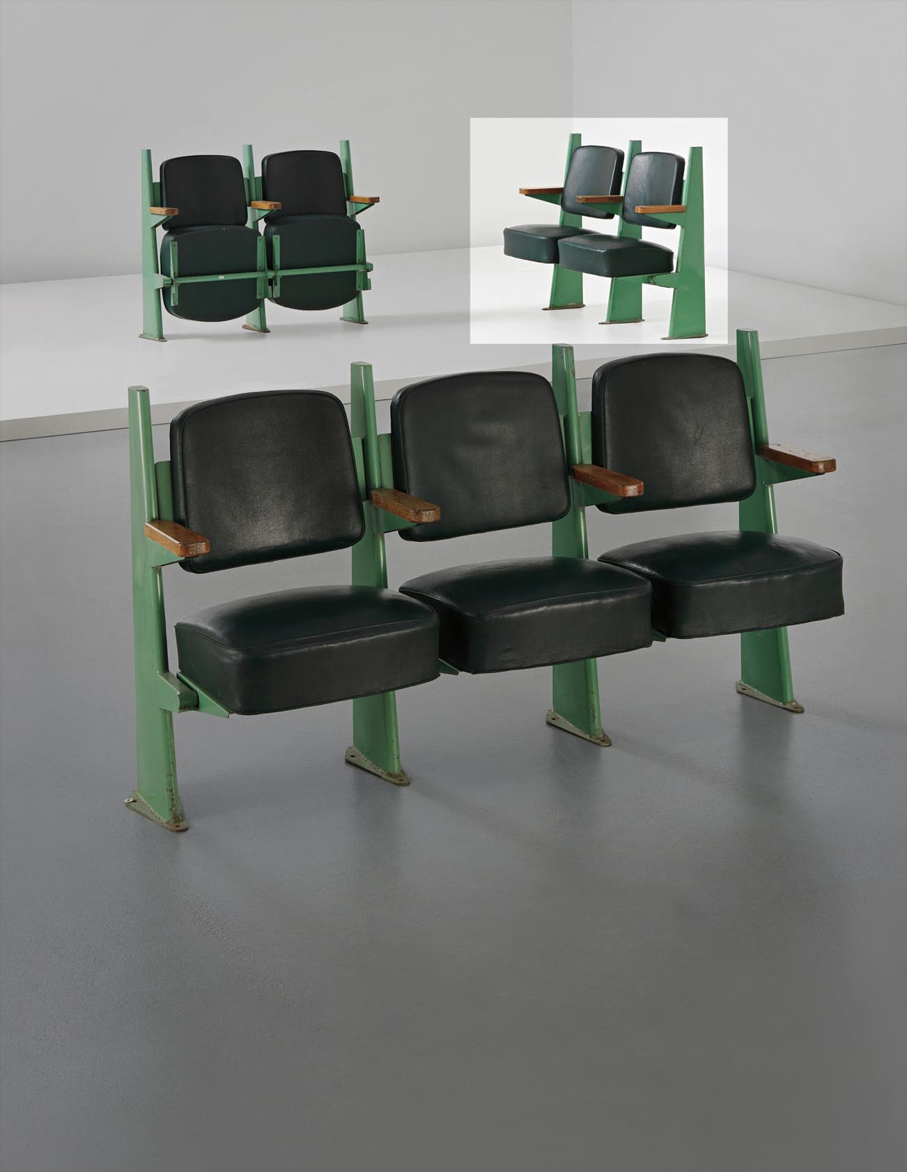 Row of two lecture theatre chairs with adjustable seats, designed for the Faculté de Lettres, Université de Besançon