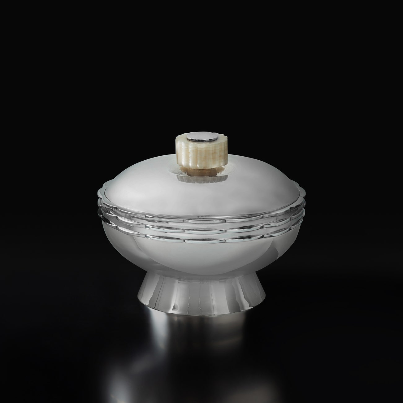 Executed by Jean Puiforcat. Side of base impressed STERLING JEAN PUIFORCAT MADE IN/MEXICO and with silversmith's mark. Side of lid impressed with silversmith's mark.