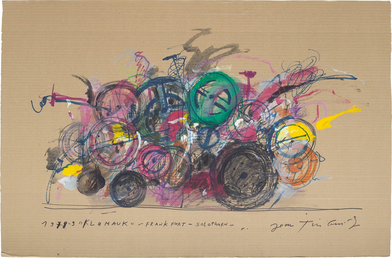 signed, titled and dated '1978-9 "KLAMAUK" - FRANKFURT - SOLOtHURN- ,. Jean Tinguely' lower centre