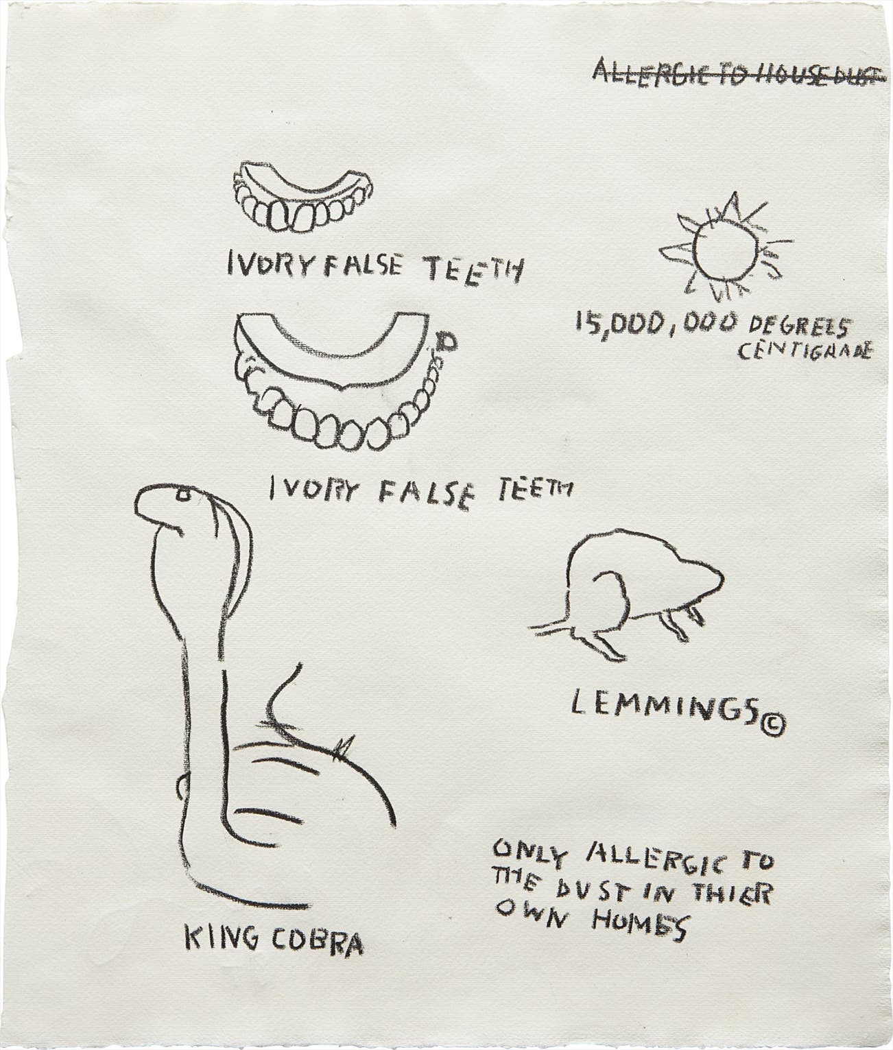 For Basquiat, these symbols represented the world at its most basic level. As an ensemble, they generate an intellectual equation made even more mystical and mysterious by its pointed lack of color. Although they may be equations, they are not meant to be solved or deciphered through any linear formula. In creating and destroying, in scribbling and crossing out, Basquiat deters a definitive decoding of his work, leaving it open to infinite permutations and interpretative possibilities. In this way, he created “a calculated incoherence, calibrating the mystery of what such apparently meaning-laden pictures might ultimately mean.” (Mark Meyer, “Basquiat in History”, Basquiat, exh. cat., Brooklyn Museum of Art, 2005, p.51).