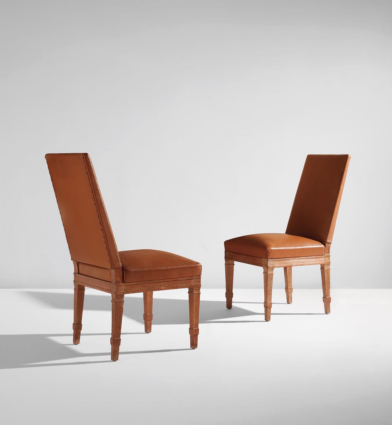 French | B. 1895 D. 1941Working in Paris, New York and Argentina, Jean-Michel Frank designed subtle, exquisitely proportioned furniture and lighting for sophisticated interiors. His elite roster of patrons included the vicomte Charles de Noailles, the businessman and politician Nelson A. Rockefeller, the couturier Elsa Schiaparelli and the perfumer Guerlain, among many others. Against the backdrop of the interwar period, Frank designed calm, subdued interiors that offered refuge from the chaotic world. His furniture, which was often clad in vellum, bleached leather or shagreen, featured clean lines and served to complement the art collections of his clients, which included works by Picasso, Léger and Matisse.