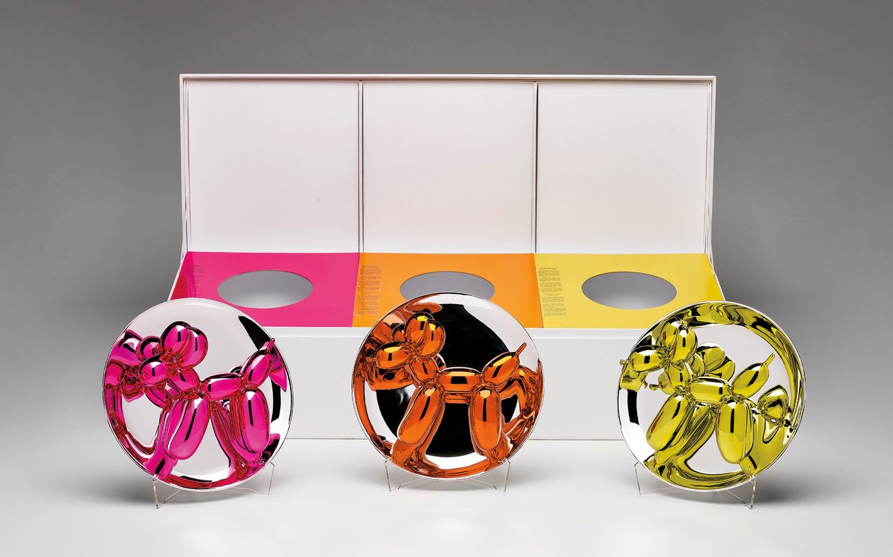 All numbered 1493/2300 in gold ink on the underside, further numbered in black ink on the accompanying Bernardaud cards, one of 25 special sets of the three colours, manufactured by Bernardaud, Limoges and published by the Museum of Contemporary Art, Los Angeles.