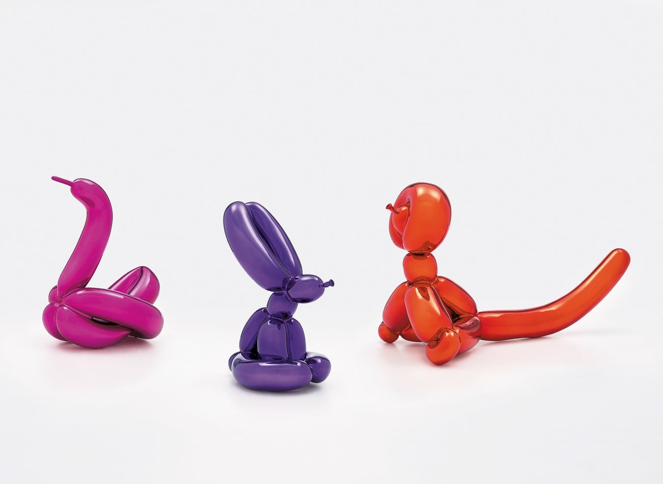 Balloon Swan (Magenta); Balloon Rabbit (Violet); and Balloon Monkey (Orange)