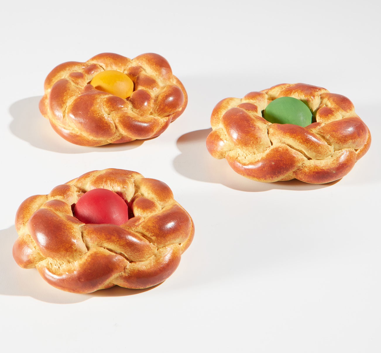 The complete set of three plaster multiples hand-painted with tempera in colors.