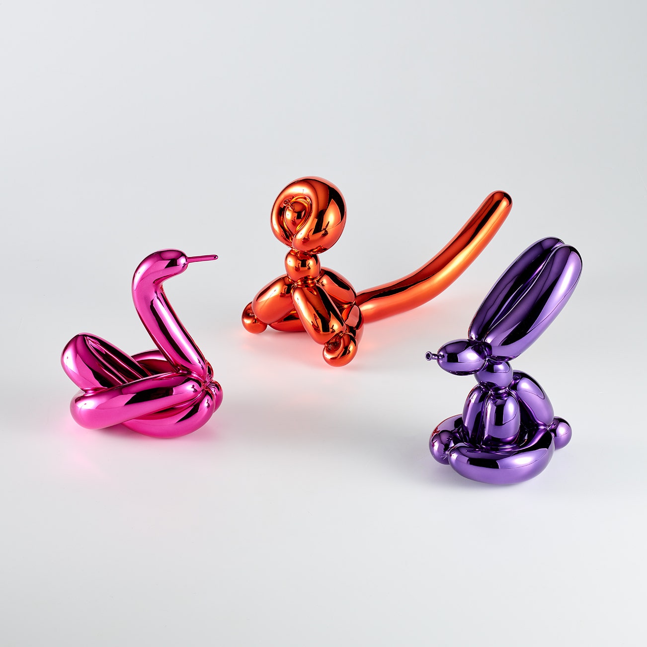 Balloon Swan (Magenta); Balloon Monkey (Orange); and Balloon Rabbit (Violet)
