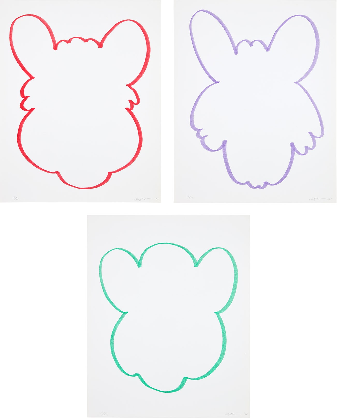 All signed, dated and numbered 18/60 in pencil (there were also 10 in Roman numerals and 15 artist's proofs), published by Edition Schellmann, Munich and New York (one with their inkstamp on the reverse), all framed.