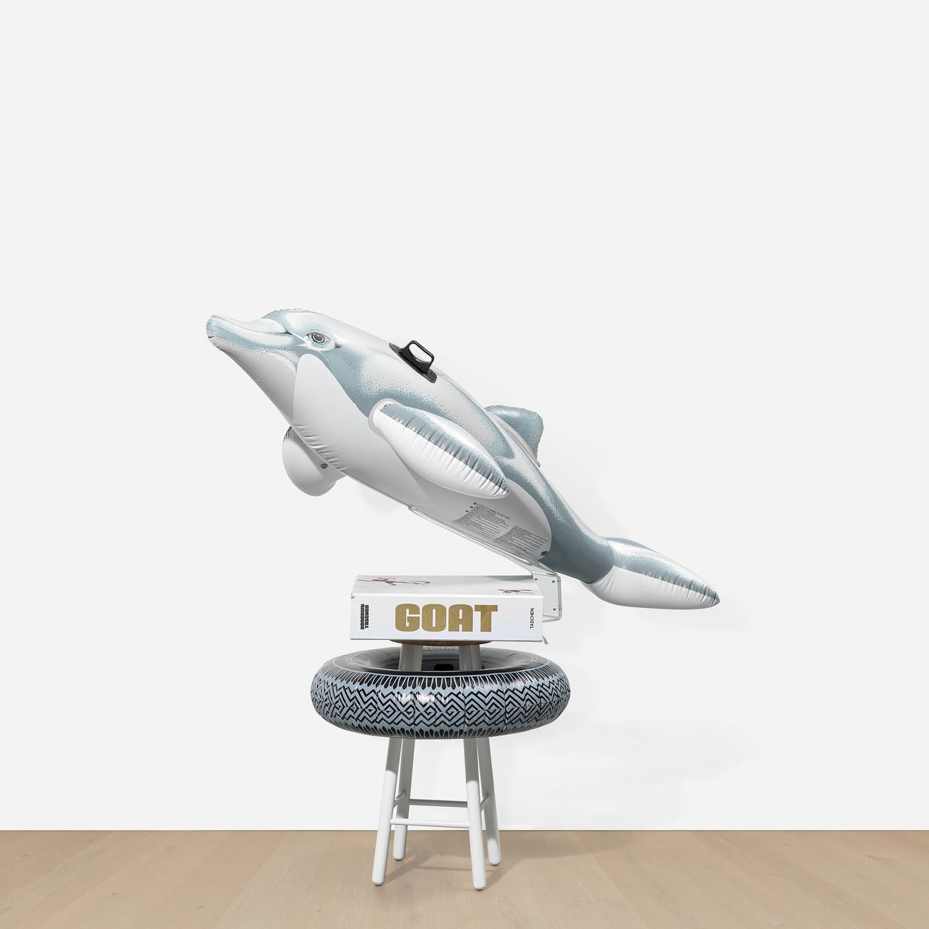 The complete deluxe "Champ's Edition" set, including Radial Champs comprised of a wooden stool, inflatable dolphin and tyre floatie, air pump and lucite supports, accompanied by installation directions and original cardboard boxes, four gelatin silver prints signed in black felt-tip pen by Howard L. Bingham and Muhammad Ali, and large book of photographs and text.