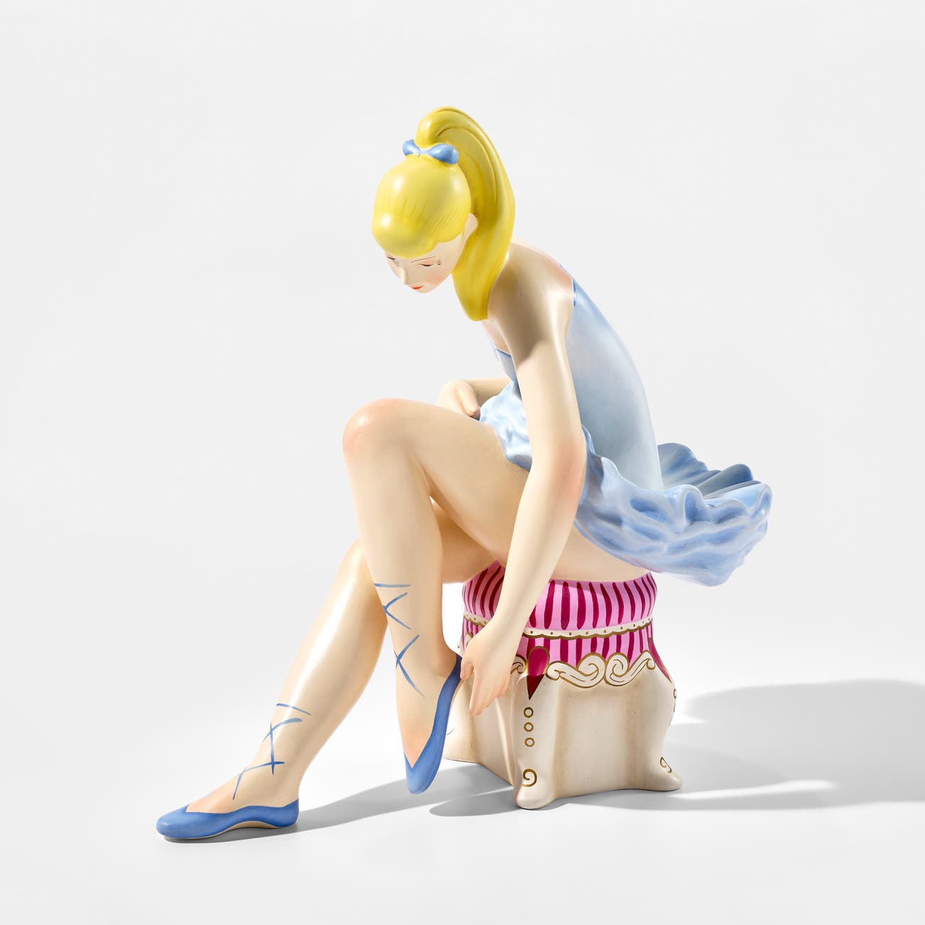 Hand-carved wood multiple, hand-painted with oil paint, accompanied by the original foam-lined box with silver-printed artist's name on the top.