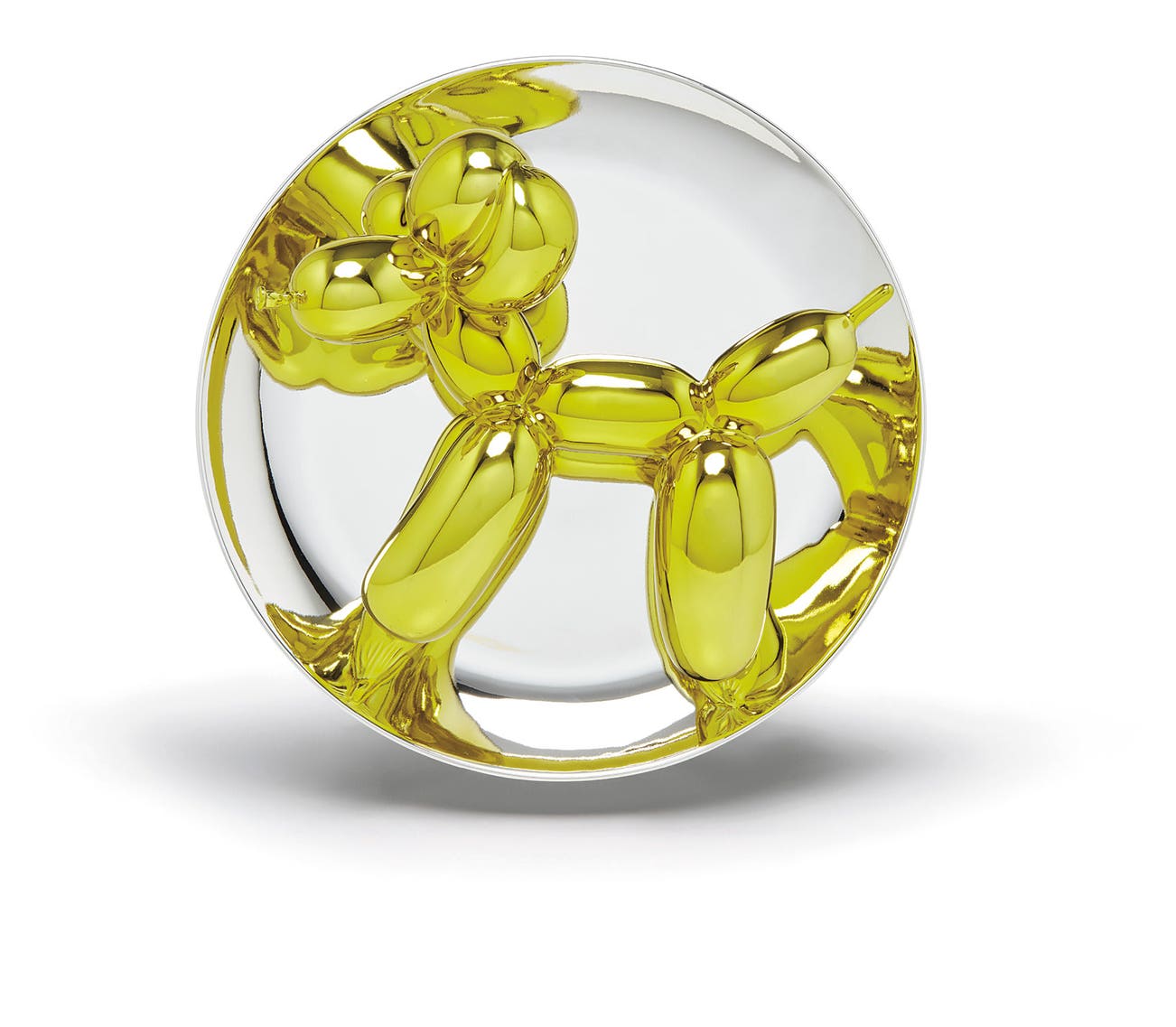 Porcelain multiple painted in chrome, contained in the original Styrofoam-lined presentation box with silver printed signature and original plastic stand.