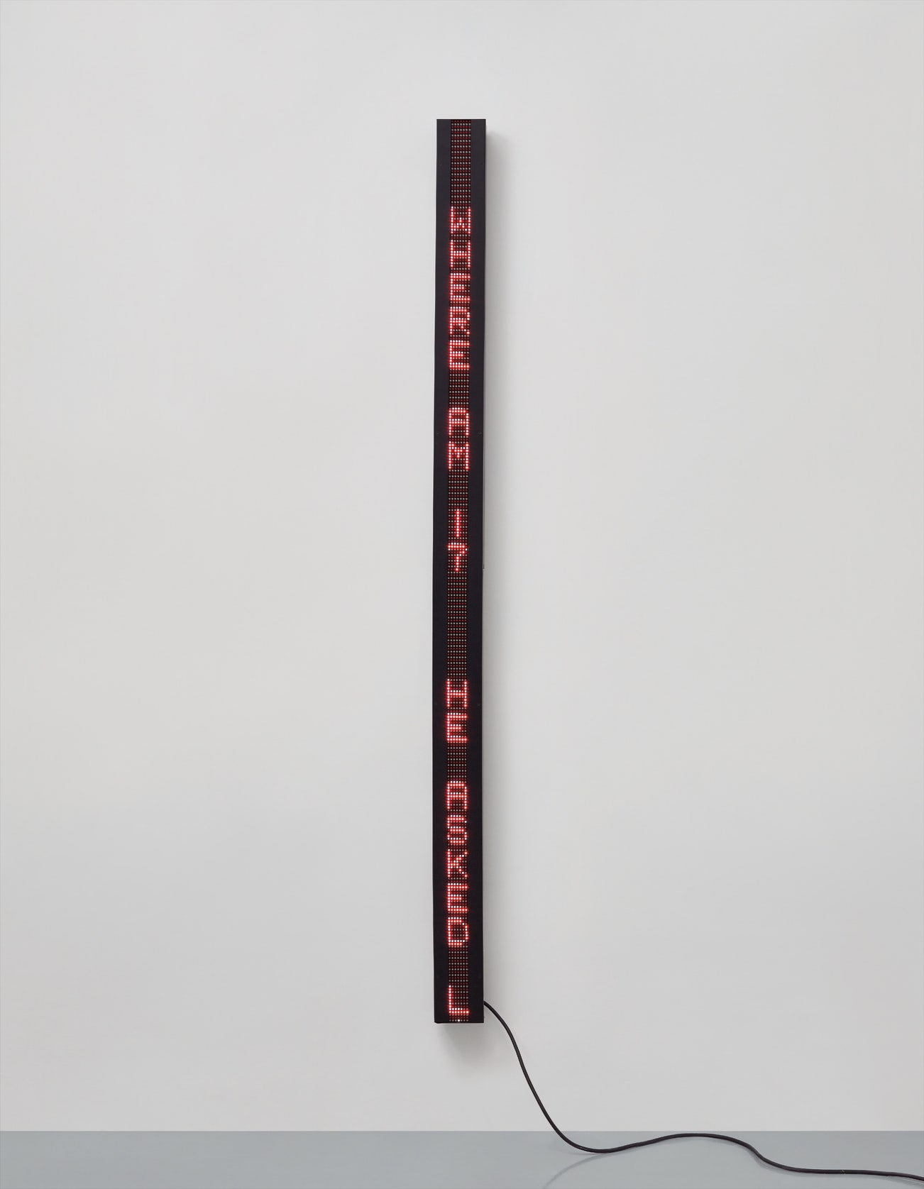 vertical electronic LED sign with red and white (pink) diodes and black aluminum housing