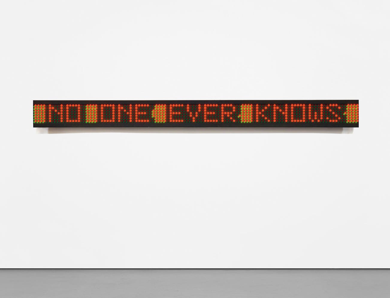 American | 1950Jenny Holzer is a Conceptual artist best known for her text-based public art projects. Holzer's work speaks of violence, oppression, sexuality, feminism, power, war and death. Throughout the years, Holzer has employed a variety of media, from a T-shirt to a plaque to an LED sign. Starting in the 1970s with the New York City posters, and continuing through her recent light projections on landscape and architecture, she uses her art as a form of communication and commentary. Holzer's art hangs in important collections around the globe including 7 World Trade Center, the Venice Biennale, the Guggenheim Museums in New York and Bilbao and the Whitney Museum of American Art.
