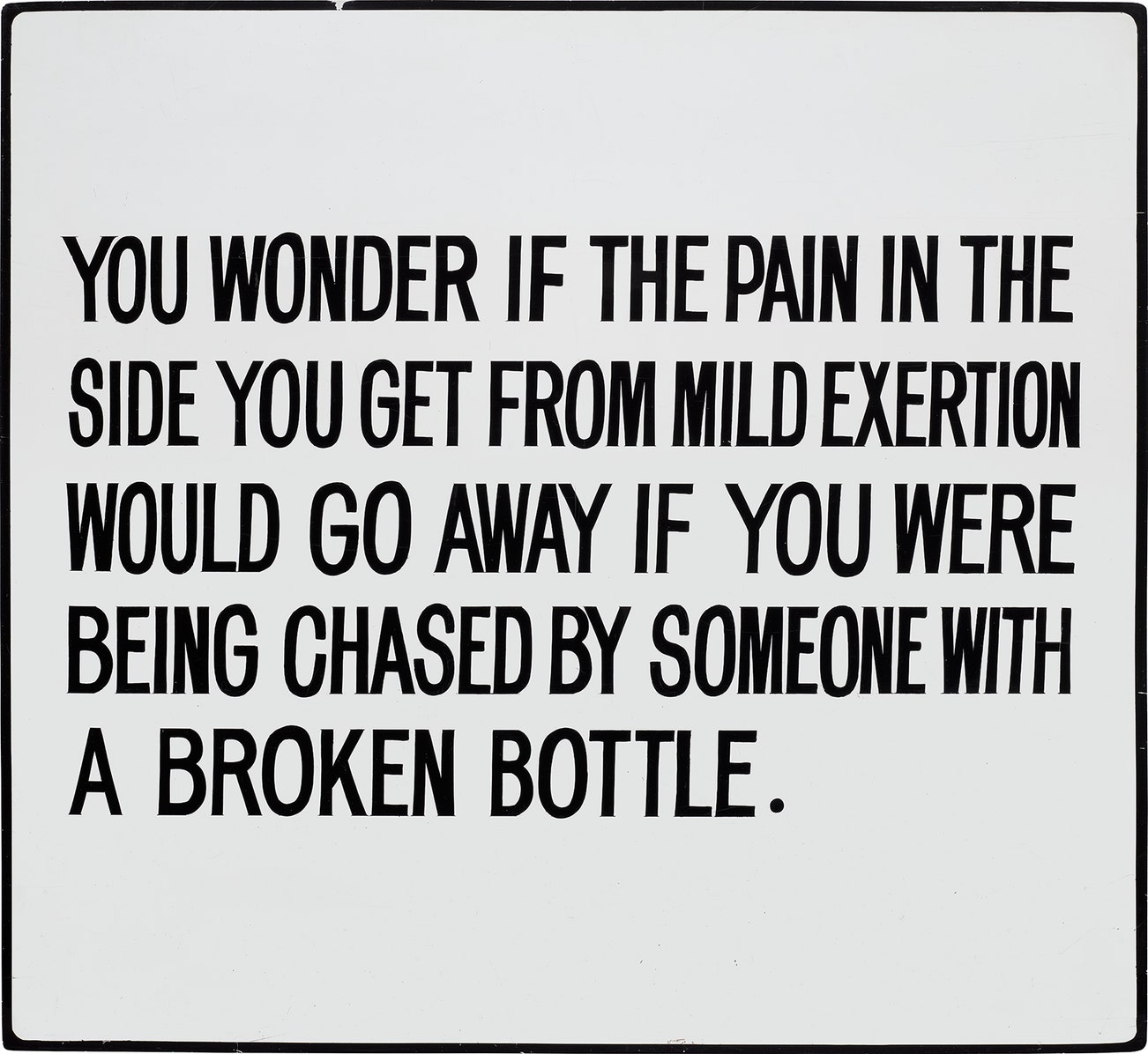 American | 1950Jenny Holzer is a Conceptual artist best known for her text-based public art projects. Holzer's work speaks of violence, oppression, sexuality, feminism, power, war and death. Throughout the years, Holzer has employed a variety of media, from a T-shirt to a plaque to an LED sign. Starting in the 1970s with the New York City posters, and continuing through her recent light projections on landscape and architecture, she uses her art as a form of communication and commentary. Holzer's art hangs in important collections around the globe including 7 World Trade Center, the Venice Biennale, the Guggenheim Museums in New York and Bilbao and the Whitney Museum of American Art.