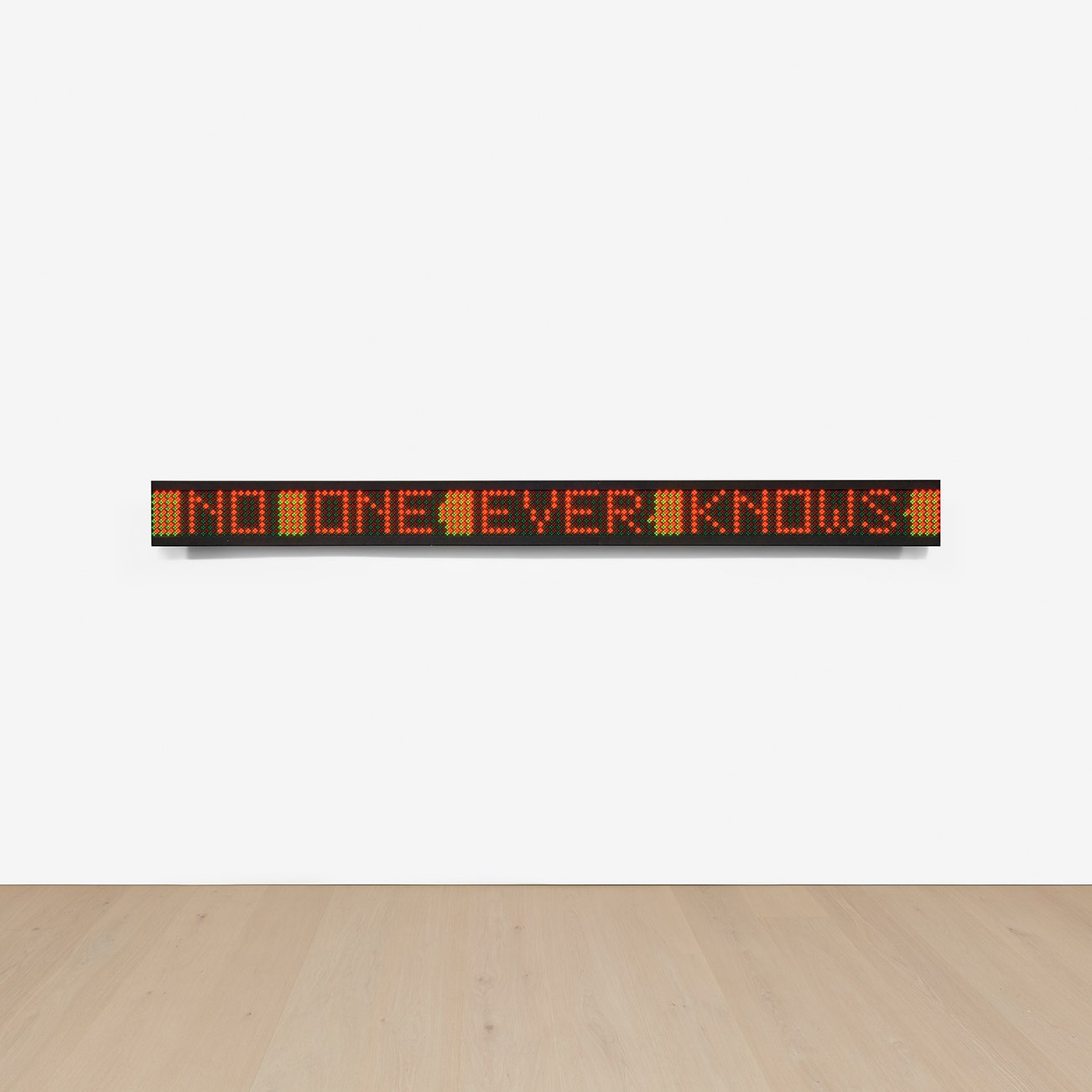 American | 1950Jenny Holzer is a Conceptual artist best known for her text-based public art projects. Holzer's work speaks of violence, oppression, sexuality, feminism, power, war and death. Throughout the years, Holzer has employed a variety of media, from a T-shirt to a plaque to an LED sign. Starting in the 1970s with the New York City posters, and continuing through her recent light projections on landscape and architecture, she uses her art as a form of communication and commentary. Holzer's art hangs in important collections around the globe including 7 World Trade Center, the Venice Biennale, the Guggenheim Museums in New York and Bilbao and the Whitney Museum of American Art.