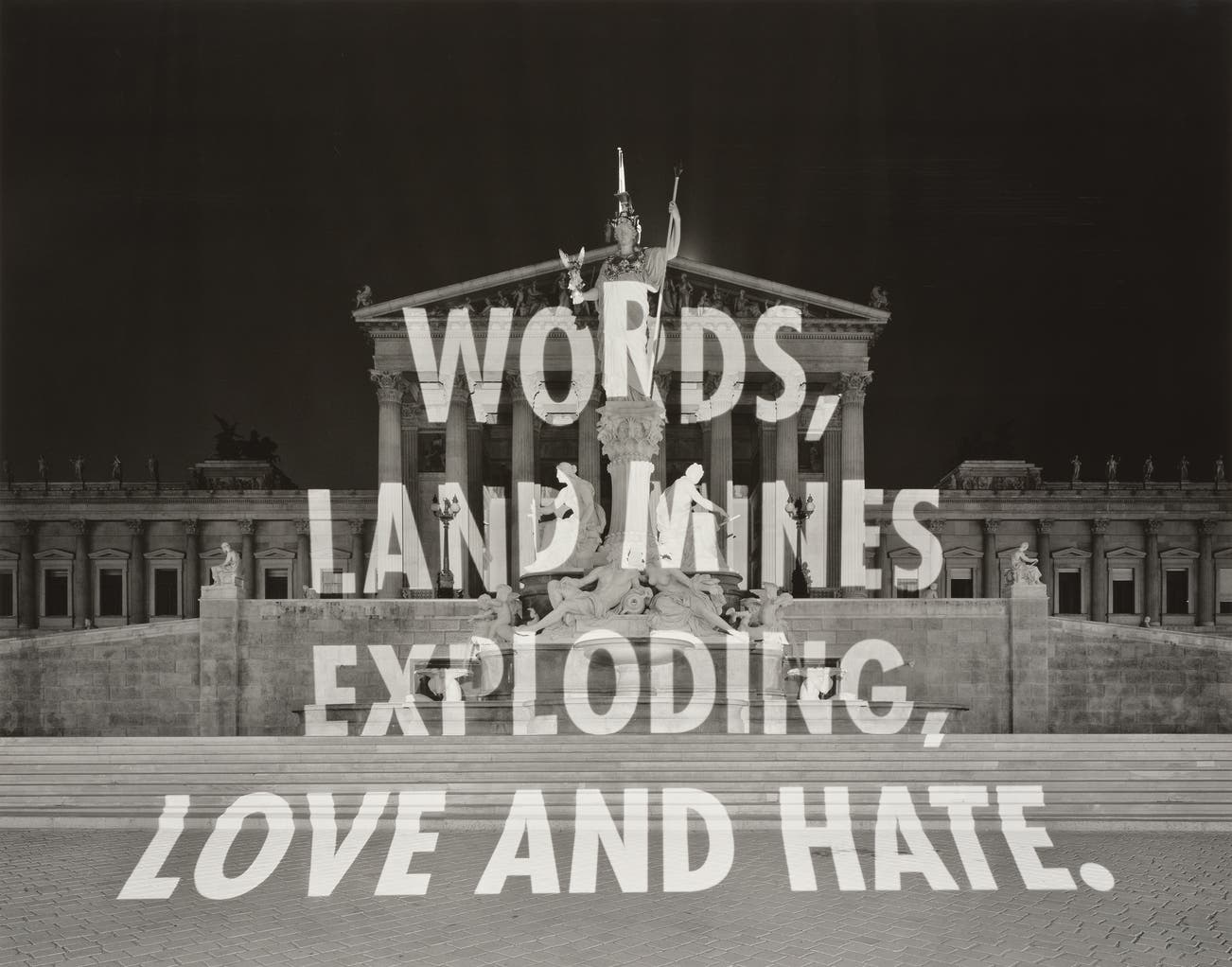 American | 1950Jenny Holzer is a Conceptual artist best known for her text-based public art projects. Holzer's work speaks of violence, oppression, sexuality, feminism, power, war and death. Throughout the years, Holzer has employed a variety of media, from a T-shirt to a plaque to an LED sign. Starting in the 1970s with the New York City posters, and continuing through her recent light projections on landscape and architecture, she uses her art as a form of communication and commentary. Holzer's art hangs in important collections around the globe including 7 World Trade Center, the Venice Biennale, the Guggenheim Museums in New York and Bilbao and the Whitney Museum of American Art.