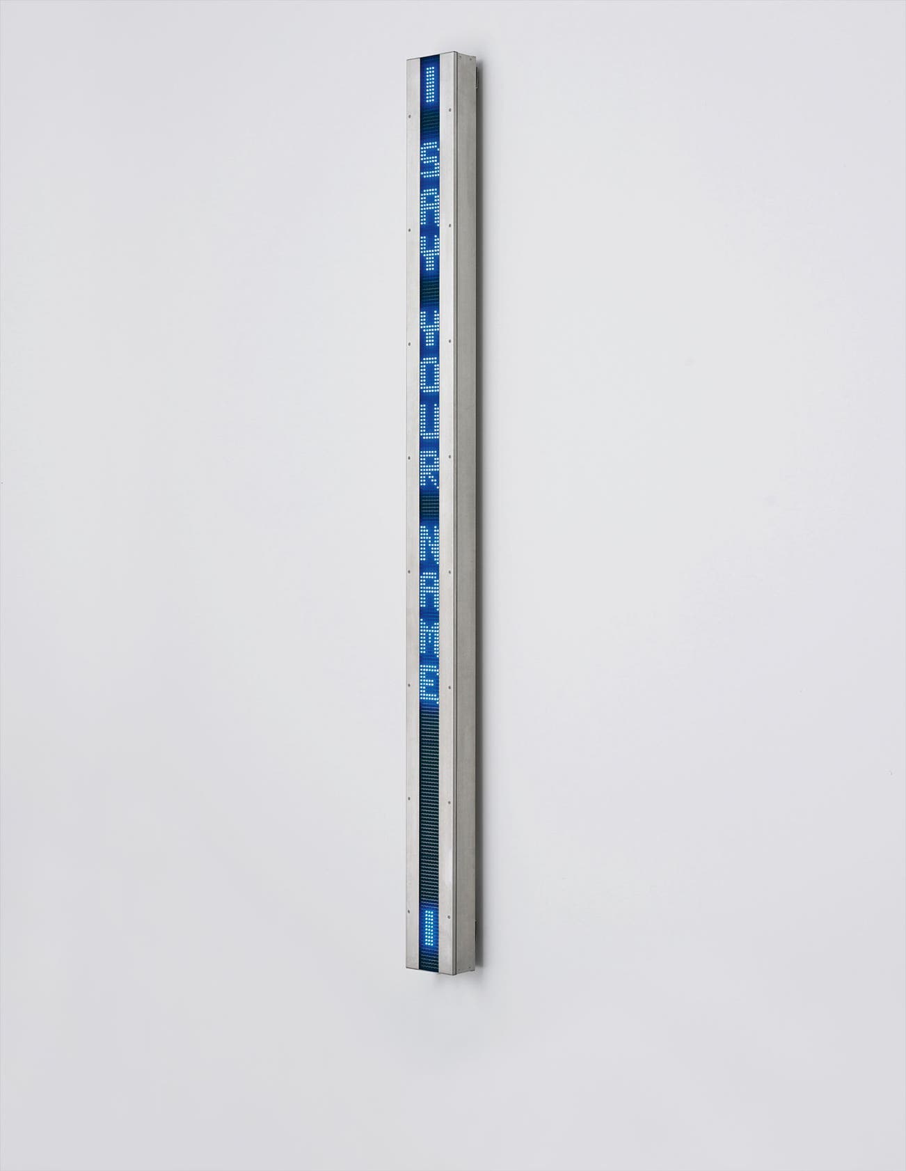 American | 1950Jenny Holzer is a Conceptual artist best known for her text-based public art projects. Holzer's work speaks of violence, oppression, sexuality, feminism, power, war and death. Throughout the years, Holzer has employed a variety of media, from a T-shirt to a plaque to an LED sign. Starting in the 1970s with the New York City posters, and continuing through her recent light projections on landscape and architecture, she uses her art as a form of communication and commentary. Holzer's art hangs in important collections around the globe including 7 World Trade Center, the Venice Biennale, the Guggenheim Museums in New York and Bilbao and the Whitney Museum of American Art.
