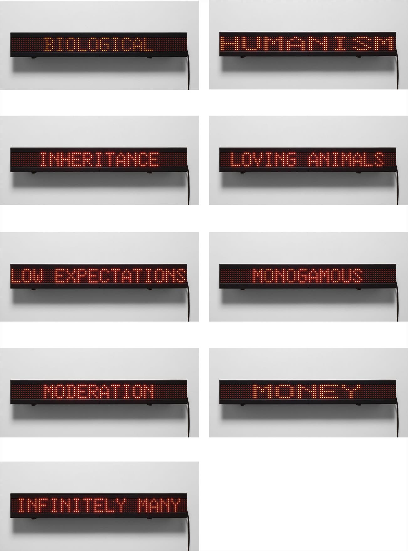 Light-emitting diode (LED) sign, with four chips each approximately 15 minutes in length,