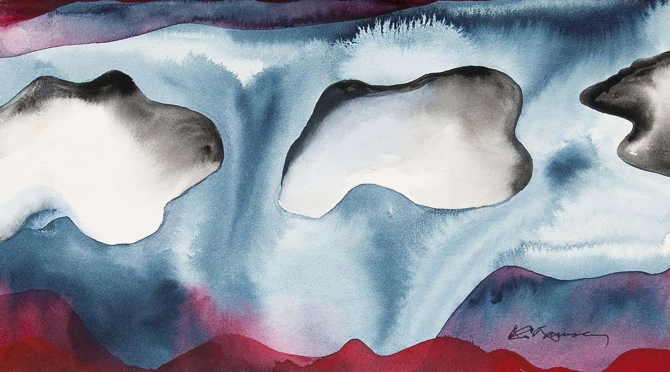 Often known as a “colourist", Jeremy Ramsey creates works which celebrate his love of colour. In this painting, he orchestrates a wash of different hues which bleed and seep into one another. By employing delicate watercolours and abstract forms, Ramsey creates a captivating canvas that exudes a remarkable sense of fluidity.