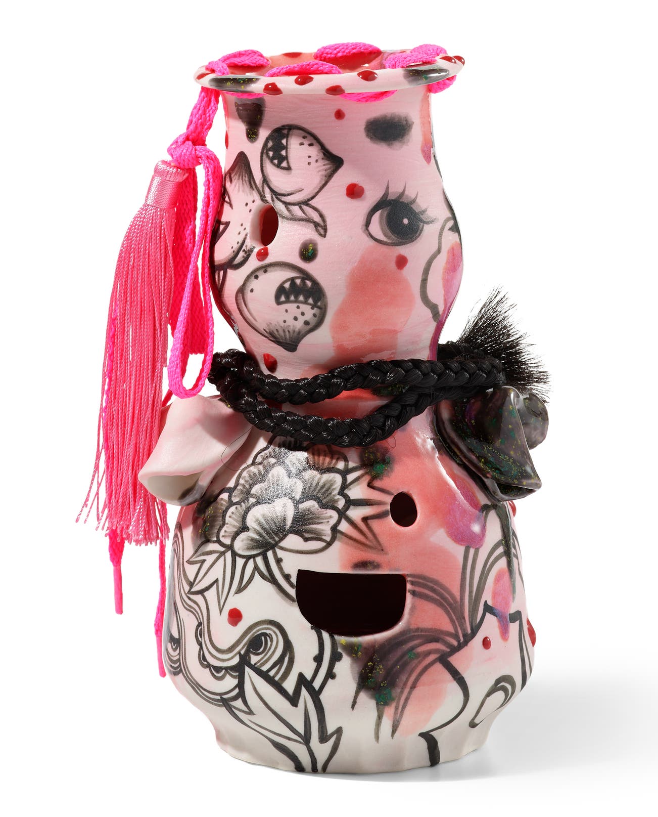 porcelain, underglaze, glaze, shoelace, tassel and synthetic hair