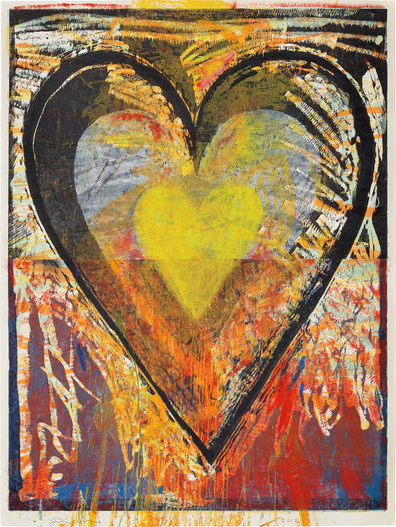 American | 1935There's a considerable chance that any given piece of art with a heart has been made by Jim Dine. The artist has been prolific in his 60-plus years of producing works, from large-scale Pop-inflected paintings to emotive and lush collaged works-on-paper. Even while working within a childlike vocabulary, Dine has often been considered alongside rougher painters like Robert Rauschenberg and Jasper Johns, and has surprised critics and audiences by flexing his muscles as an original generator of performance art "Happenings" or towering series of sculptures.
