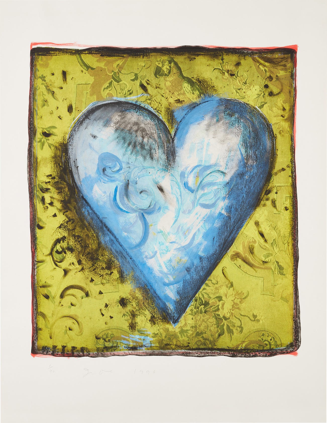 American | 1935There's a considerable chance that any given piece of art with a heart has been made by Jim Dine. The artist has been prolific in his 60-plus years of producing works, from large-scale Pop-inflected paintings to emotive and lush collaged works-on-paper. Even while working within a childlike vocabulary, Dine has often been considered alongside rougher painters like Robert Rauschenberg and Jasper Johns, and has surprised critics and audiences by flexing his muscles as an original generator of performance art "Happenings" or towering series of sculptures.