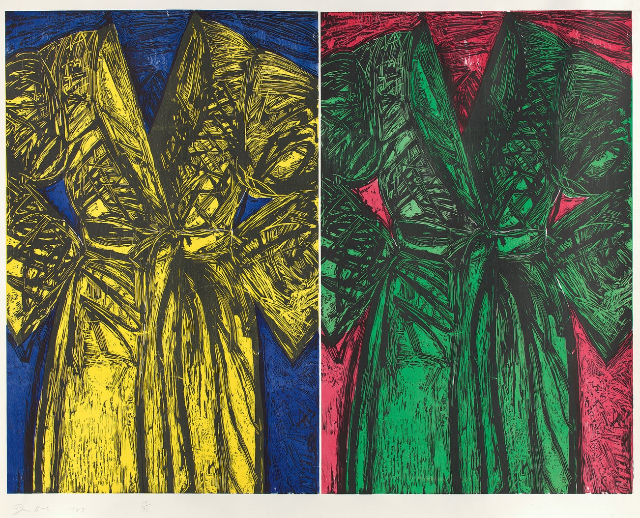 American | 1935There's a considerable chance that any given piece of art with a heart has been made by Jim Dine. The artist has been prolific in his 60-plus years of producing works, from large-scale Pop-inflected paintings to emotive and lush collaged works-on-paper. Even while working within a childlike vocabulary, Dine has often been considered alongside rougher painters like Robert Rauschenberg and Jasper Johns, and has surprised critics and audiences by flexing his muscles as an original generator of performance art "Happenings" or towering series of sculptures.