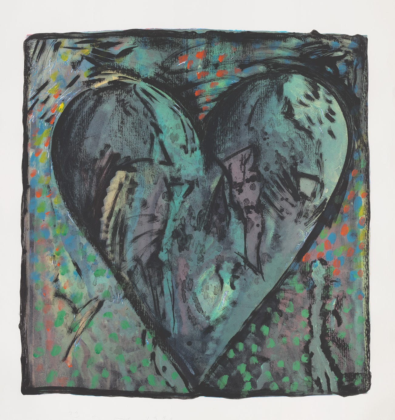 American | 1935There's a considerable chance that any given piece of art with a heart has been made by Jim Dine. The artist has been prolific in his 60-plus years of producing works, from large-scale Pop-inflected paintings to emotive and lush collaged works-on-paper. Even while working within a childlike vocabulary, Dine has often been considered alongside rougher painters like Robert Rauschenberg and Jasper Johns, and has surprised critics and audiences by flexing his muscles as an original generator of performance art "Happenings" or towering series of sculptures.