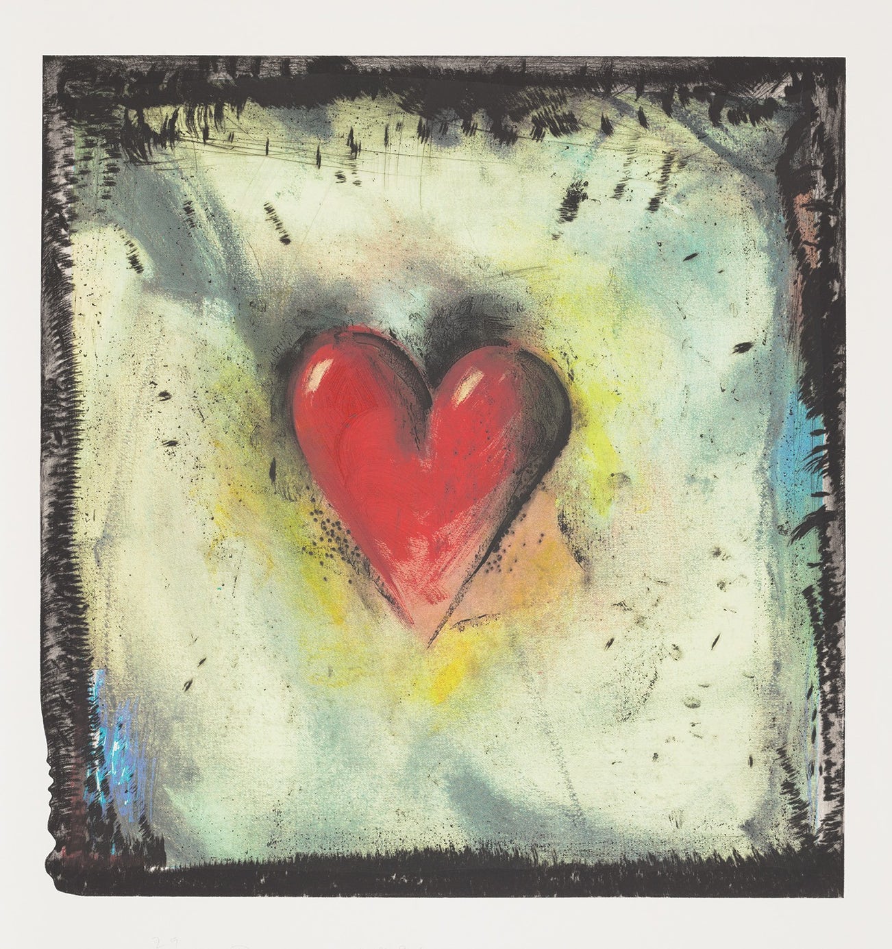 American | 1935There's a considerable chance that any given piece of art with a heart has been made by Jim Dine. The artist has been prolific in his 60-plus years of producing works, from large-scale Pop-inflected paintings to emotive and lush collaged works-on-paper. Even while working within a childlike vocabulary, Dine has often been considered alongside rougher painters like Robert Rauschenberg and Jasper Johns, and has surprised critics and audiences by flexing his muscles as an original generator of performance art "Happenings" or towering series of sculptures.