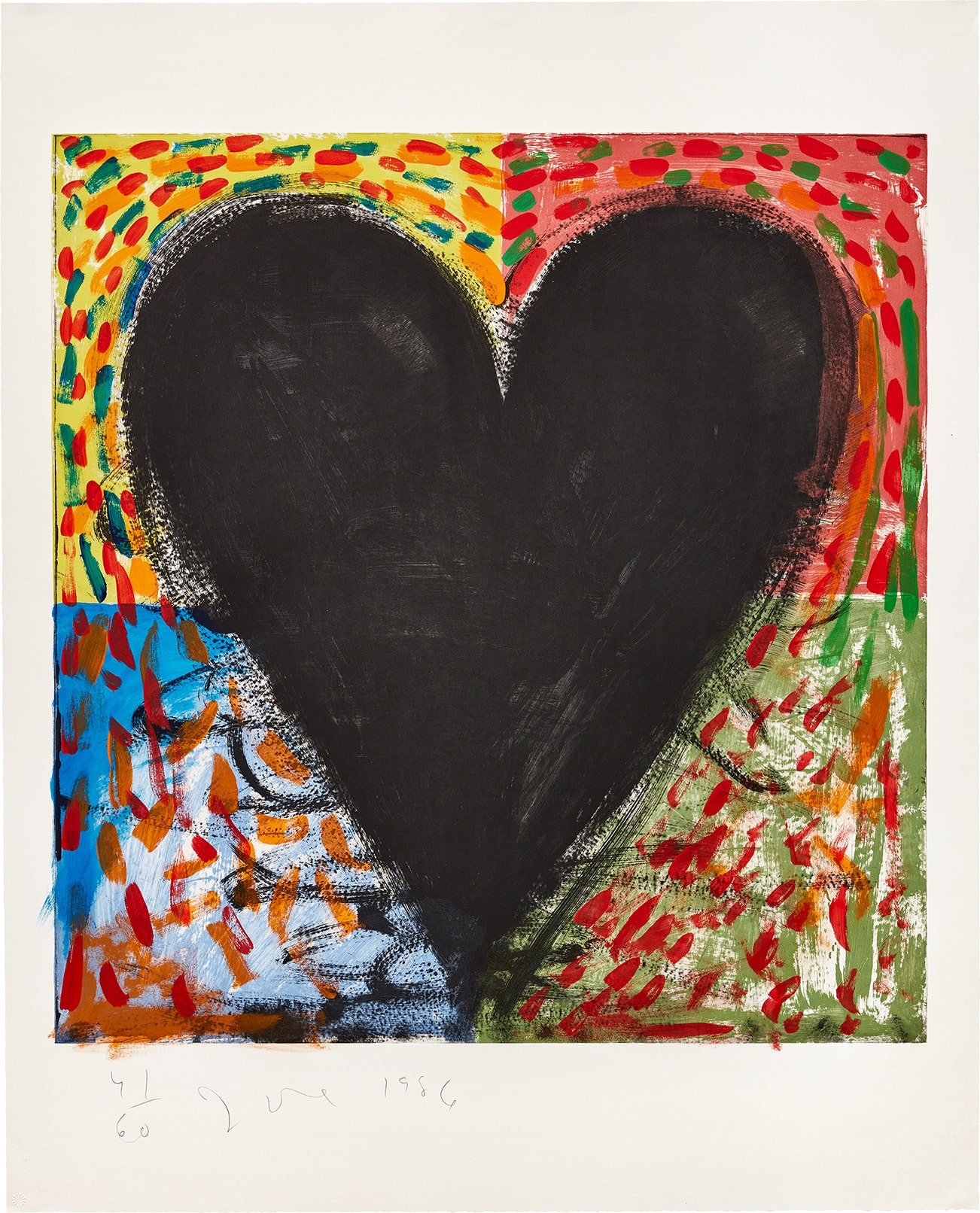American | 1935There's a considerable chance that any given piece of art with a heart has been made by Jim Dine. The artist has been prolific in his 60-plus years of producing works, from large-scale Pop-inflected paintings to emotive and lush collaged works-on-paper. Even while working within a childlike vocabulary, Dine has often been considered alongside rougher painters like Robert Rauschenberg and Jasper Johns, and has surprised critics and audiences by flexing his muscles as an original generator of performance art "Happenings" or towering series of sculptures.