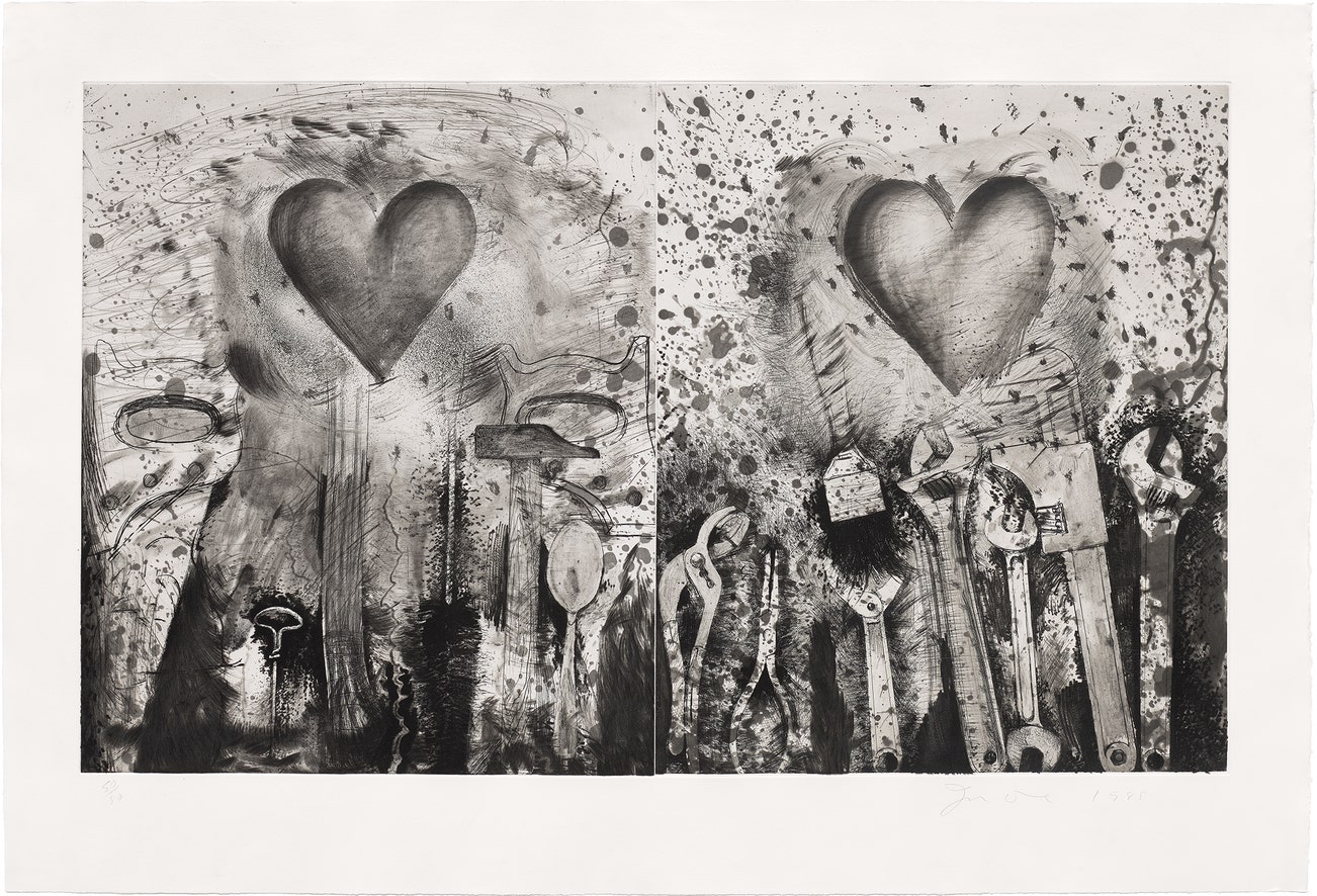 American | 1935There's a considerable chance that any given piece of art with a heart has been made by Jim Dine. The artist has been prolific in his 60-plus years of producing works, from large-scale Pop-inflected paintings to emotive and lush collaged works-on-paper. Even while working within a childlike vocabulary, Dine has often been considered alongside rougher painters like Robert Rauschenberg and Jasper Johns, and has surprised critics and audiences by flexing his muscles as an original generator of performance art "Happenings" or towering series of sculptures.