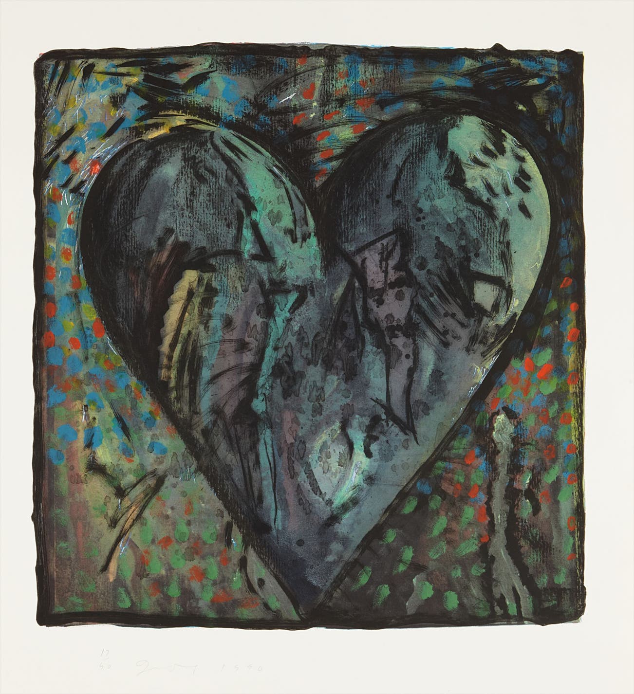 American | 1935There's a considerable chance that any given piece of art with a heart has been made by Jim Dine. The artist has been prolific in his 60-plus years of producing works, from large-scale Pop-inflected paintings to emotive and lush collaged works-on-paper. Even while working within a childlike vocabulary, Dine has often been considered alongside rougher painters like Robert Rauschenberg and Jasper Johns, and has surprised critics and audiences by flexing his muscles as an original generator of performance art "Happenings" or towering series of sculptures.