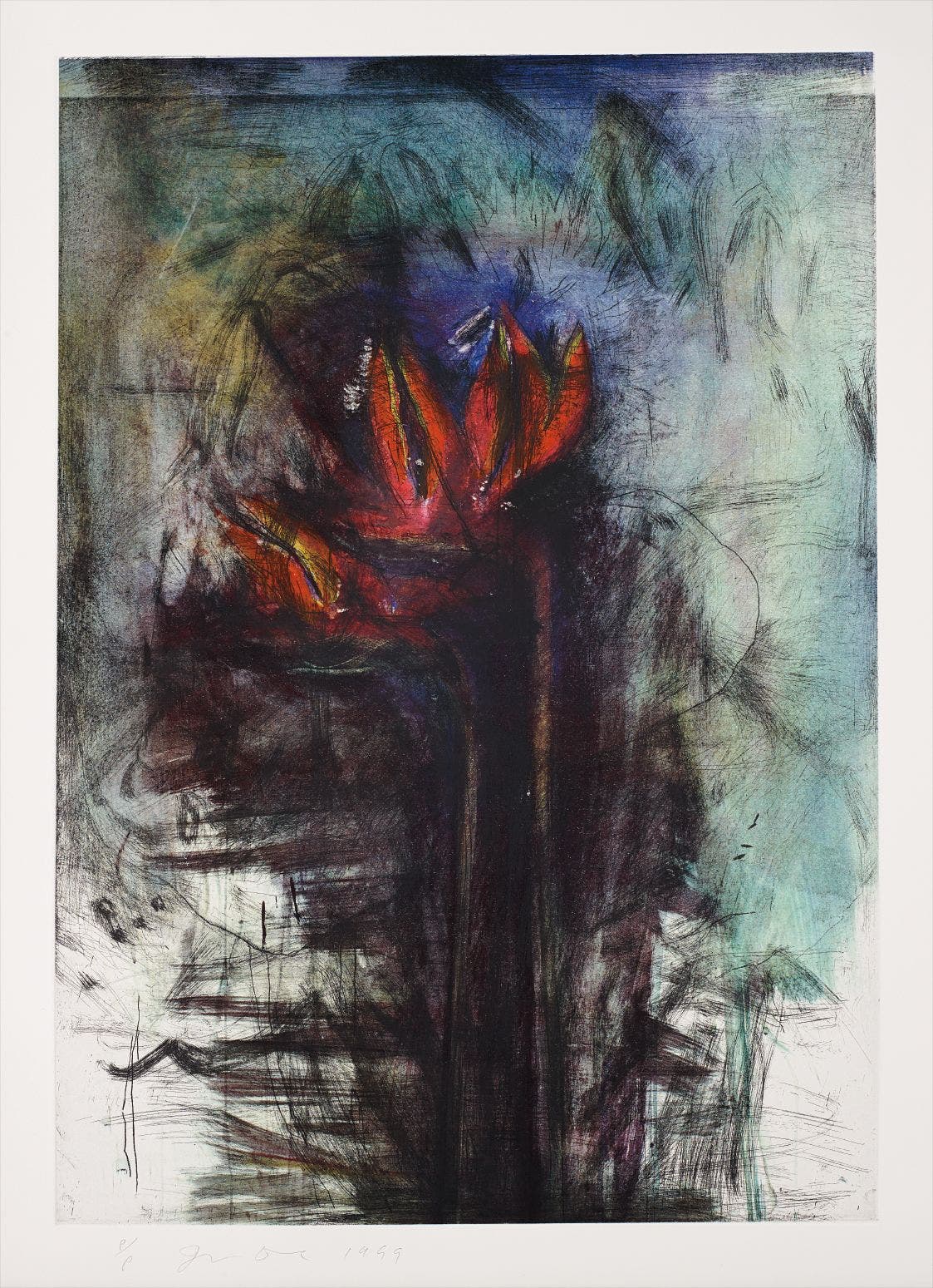 American | 1935There's a considerable chance that any given piece of art with a heart has been made by Jim Dine. The artist has been prolific in his 60-plus years of producing works, from large-scale Pop-inflected paintings to emotive and lush collaged works-on-paper. Even while working within a childlike vocabulary, Dine has often been considered alongside rougher painters like Robert Rauschenberg and Jasper Johns, and has surprised critics and audiences by flexing his muscles as an original generator of performance art "Happenings" or towering series of sculptures.