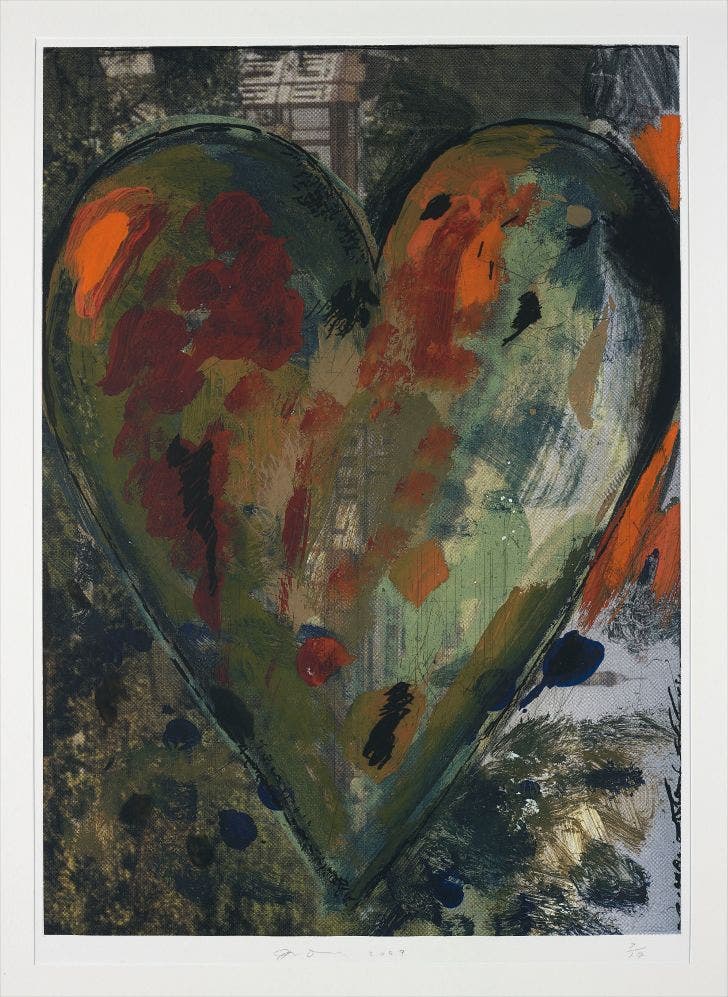 American | 1935There's a considerable chance that any given piece of art with a heart has been made by Jim Dine. The artist has been prolific in his 60-plus years of producing works, from large-scale Pop-inflected paintings to emotive and lush collaged works-on-paper. Even while working within a childlike vocabulary, Dine has often been considered alongside rougher painters like Robert Rauschenberg and Jasper Johns, and has surprised critics and audiences by flexing his muscles as an original generator of performance art "Happenings" or towering series of sculptures.