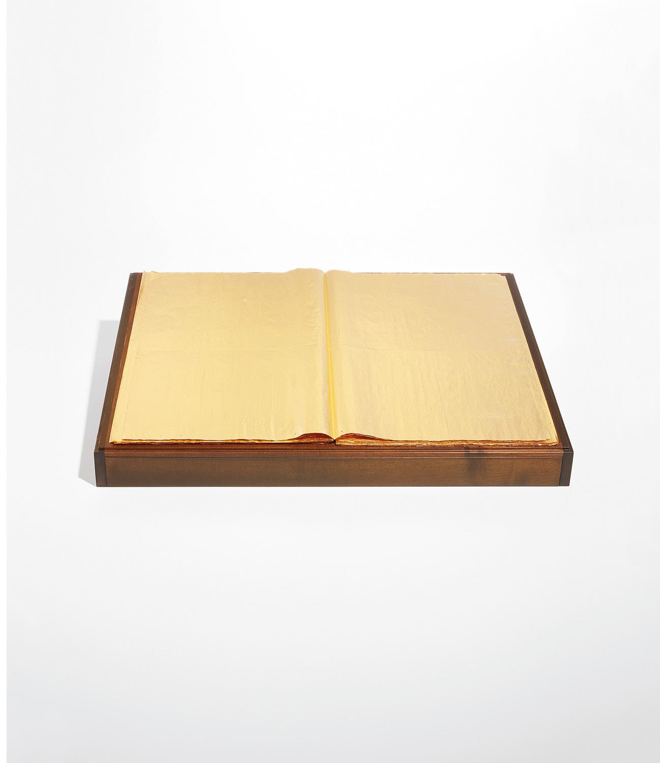 24 karat gold on newsprint, in artist's wood and Plexiglas box