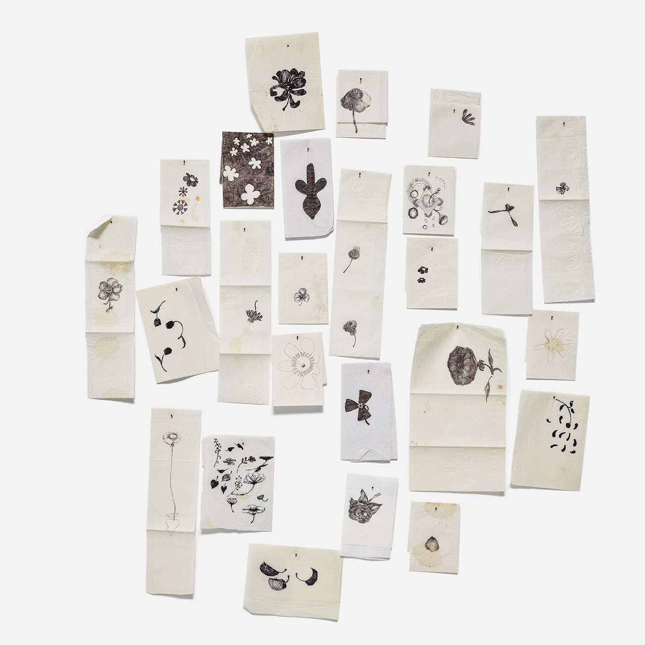 ink on 26 napkins with pins