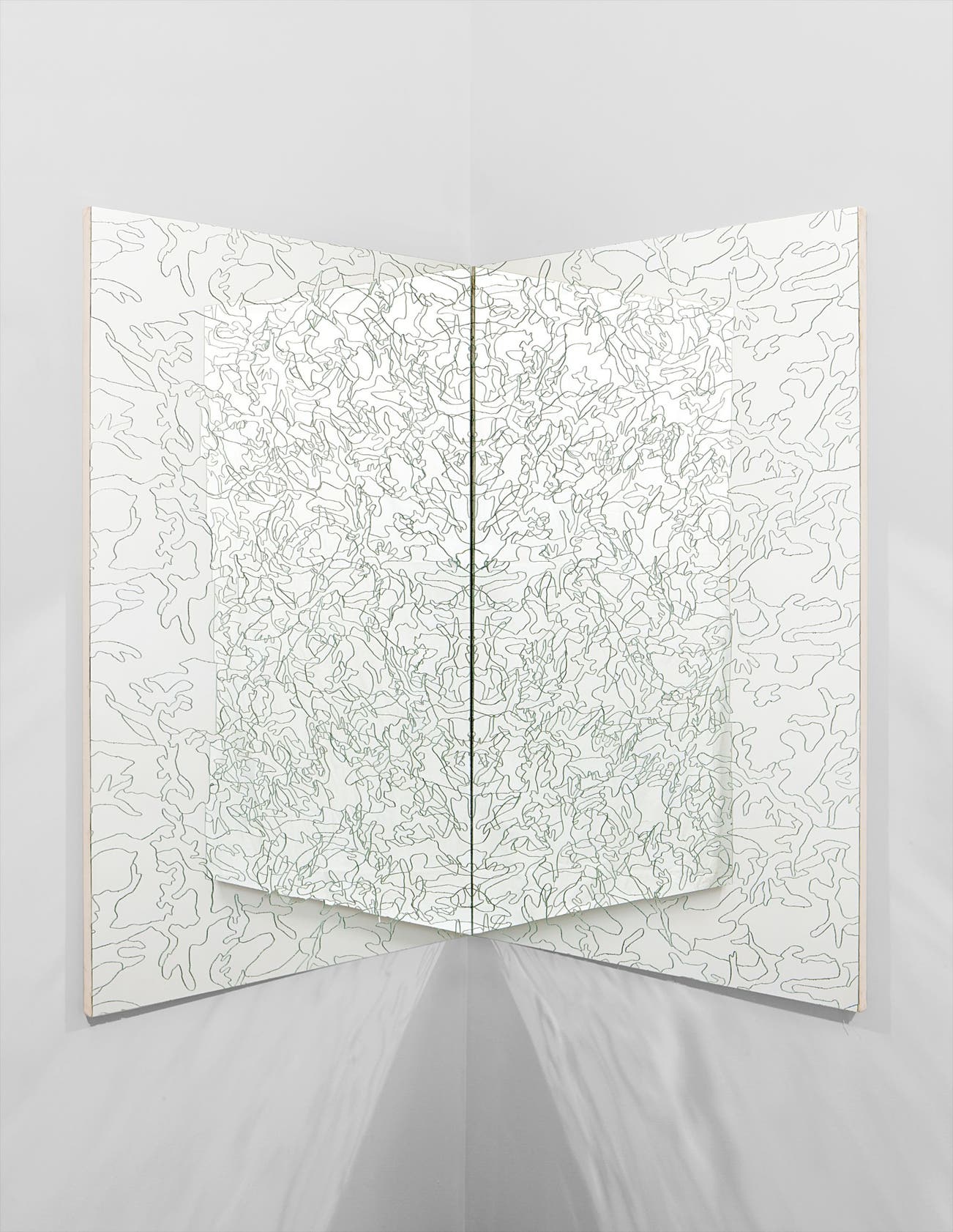 This work can be shown across a corner or with the two mirrored elements side by side.