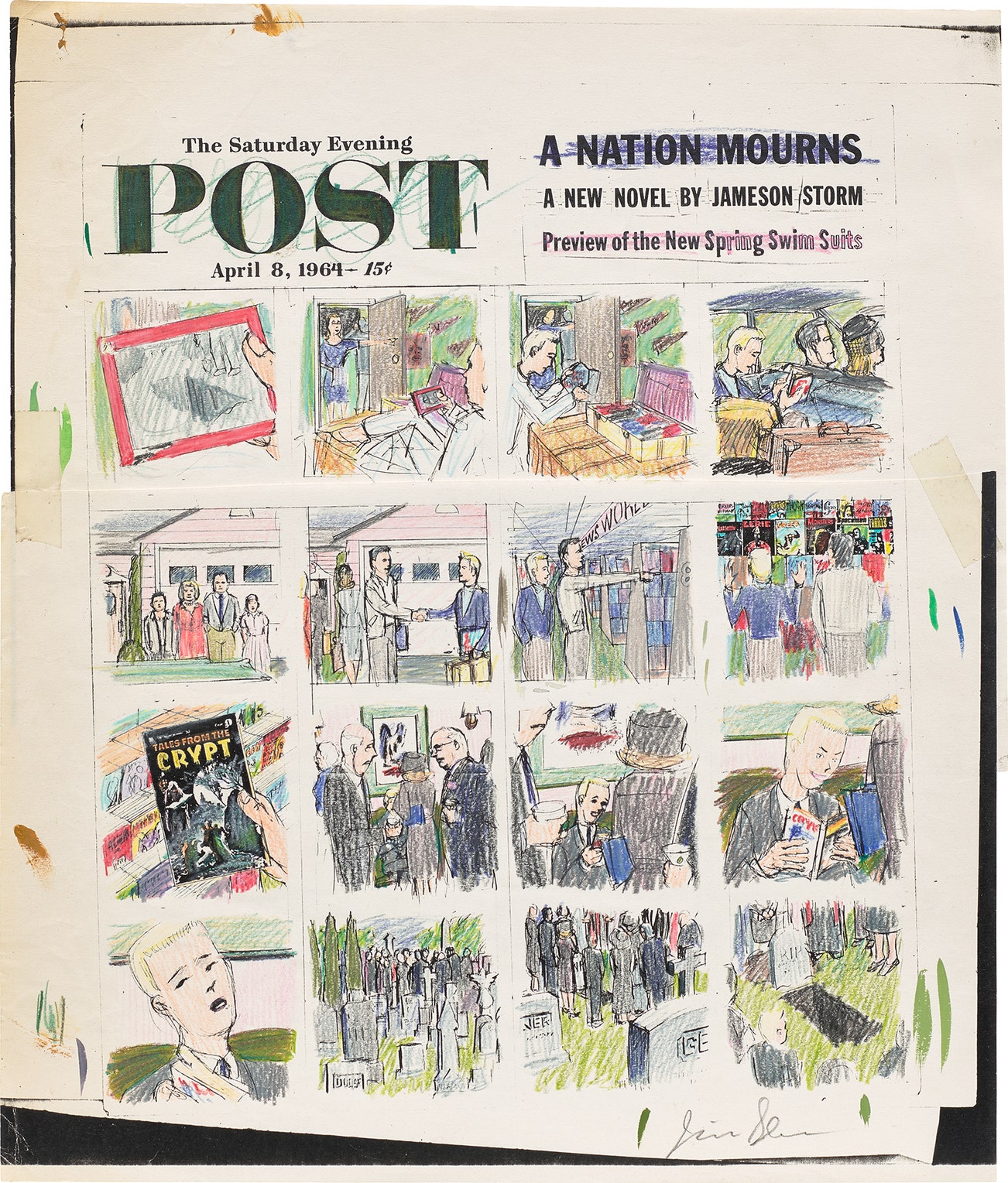 coloured pencil and acrylic on Xerox, on 2 sheets of paper with masking tape