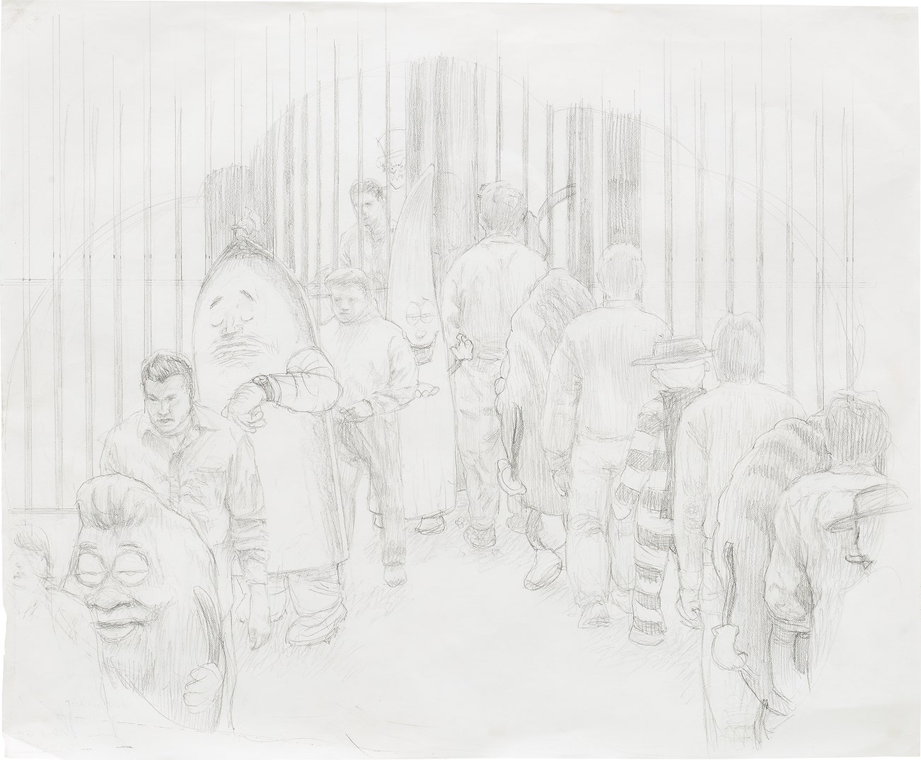 Untitled Study for "Woman in the Wilderness" (Fast Food Characters in a Line)