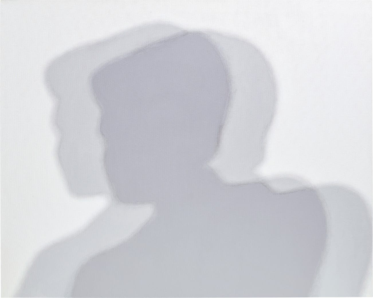 From Jiro Takamatsu’s most iconic body of work, Shadow (No. 1430), demonstrates the artist’s inimitable ability to shape the impossibilities of time and space. In his Shadow Paintings series, which he commenced in 1964 and continued until his death in 1998, Takamatsu explored the origins of painting. Inspired by the shadows found in 19th century Japanese woodcut prints, the minimalist composition presents the viewer with Takamatsu’s trompe l’oeil; the two-toned intersecting silhouette forming a conceptual portrait. Two corresponding figures, in different shades of grey, intersect at the centre of the composition, suggesting multiple light sources overhead. Throughout Takamatsu’s celebrated body of work shadows appear on white walls, uneven surfaces or planks of wood; the sitter is not present, it is their silhouette that dominates the composition. The absence of the subject is transformed into a tangible though invisible figure. Commenting on the impossibility of capturing the entirety of a subject, Takamatsu noted: ‘no matter how tiny an object might be, when we humans have a relationship with it, that relationship becomes multilateral and multidimensional, wherein we can get in touch with its totality….humans can never have a completely total relationship with a thing or comprehend its totality’ (Jiro Takamatsu, quoted in, ‘Zentaisei nit suite,’ GQ, no. 2, January 1973, p. 48). Presenting the viewer with the memory of an object or sitter, the artist masterfully challenges the orthodoxy of representational painting.